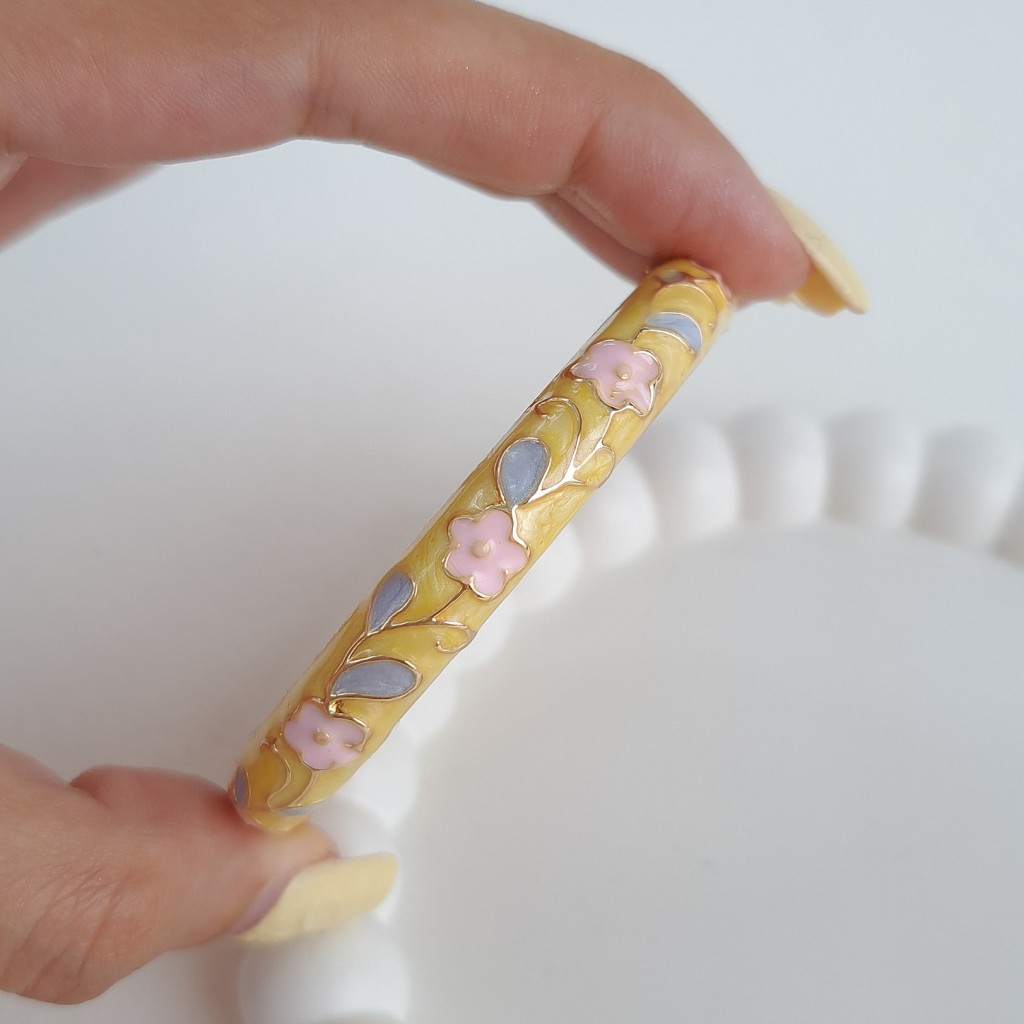 دستبند بنگل میناکاری زرد گل صورتی*