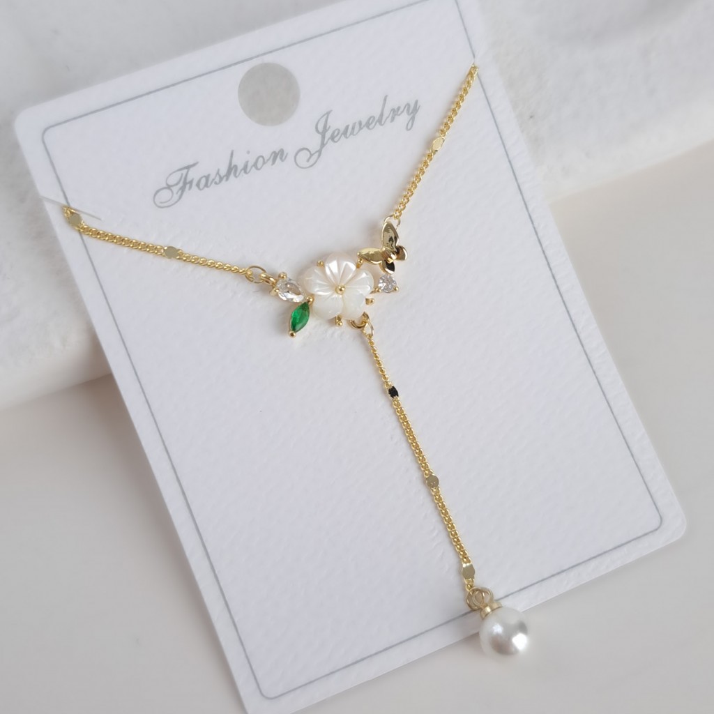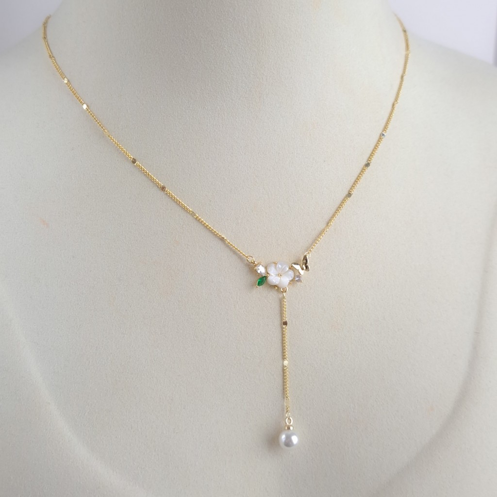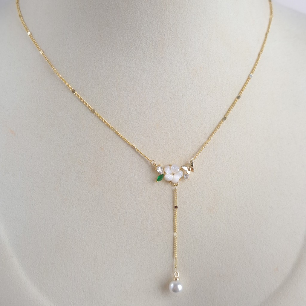 گردنبند زیبا و بسیار با کیفیت شکوفه سفید با زنجیر پولکی که دقیقا مشابه زنجیر با کیفیت تمیمه پولکی ست انتخابی عالی برای کسانی ست که به جزئیات و ظرافت اهمیت می دهند.