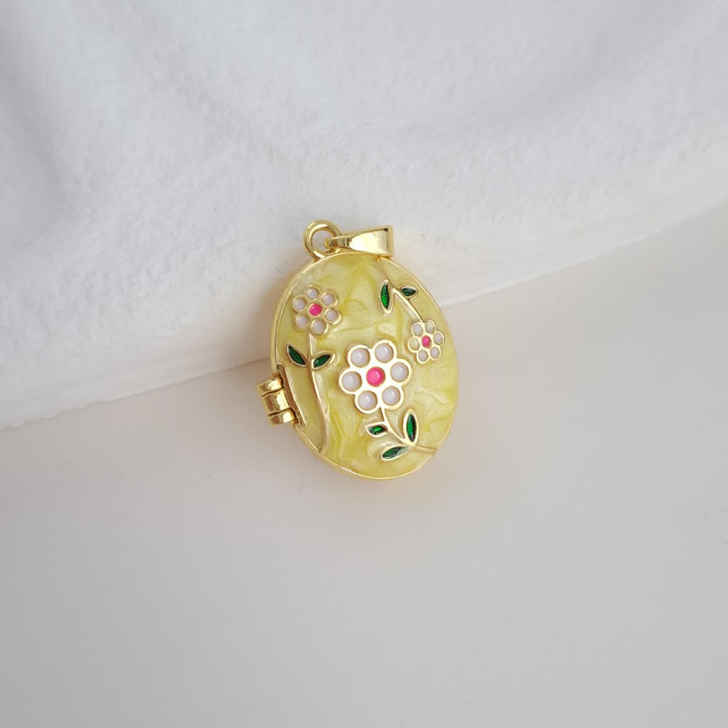 گردنبند لاکت بیضی شاخه گل میناکاری زرد*