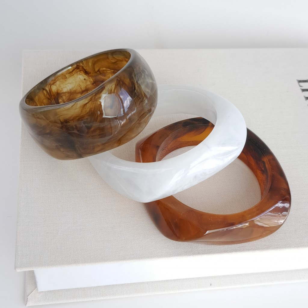 رزین اپوکسی بهکاررفته در ساخت این النگوها باعث میشود که سطح آنها شیشهای و براق باشد، اما در عین حال مقاومت بالایی در برابر ضربه و خط و خش داشته باشند. رنگ شفاف و درخشان آن باعث میشود این ست با هر رنگ لباس و سبک پوششی هماهنگ شود؛ از استایلهای ساده مینیمال گرفته تا پوششهای رنگی و جسورانه.