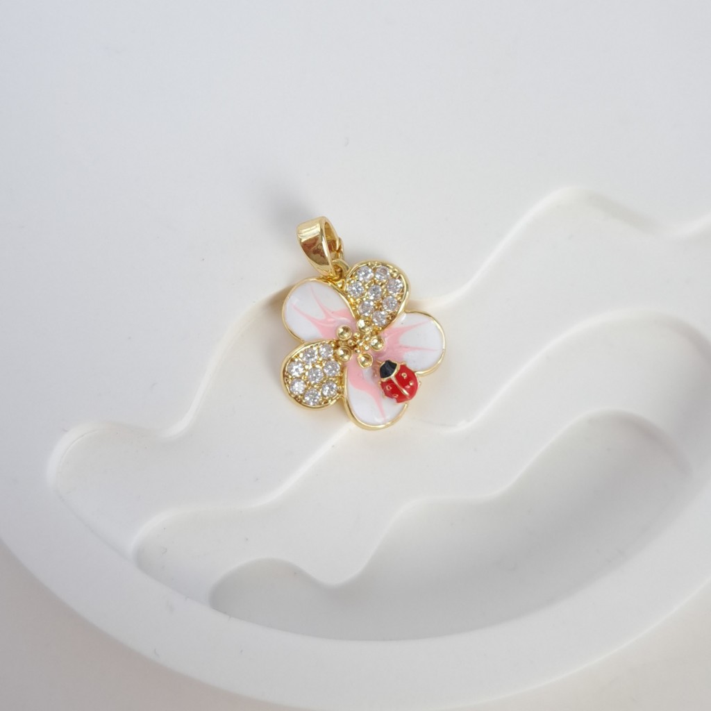 آویز بدون زنجیر گل نگین دار و کفش دوزک