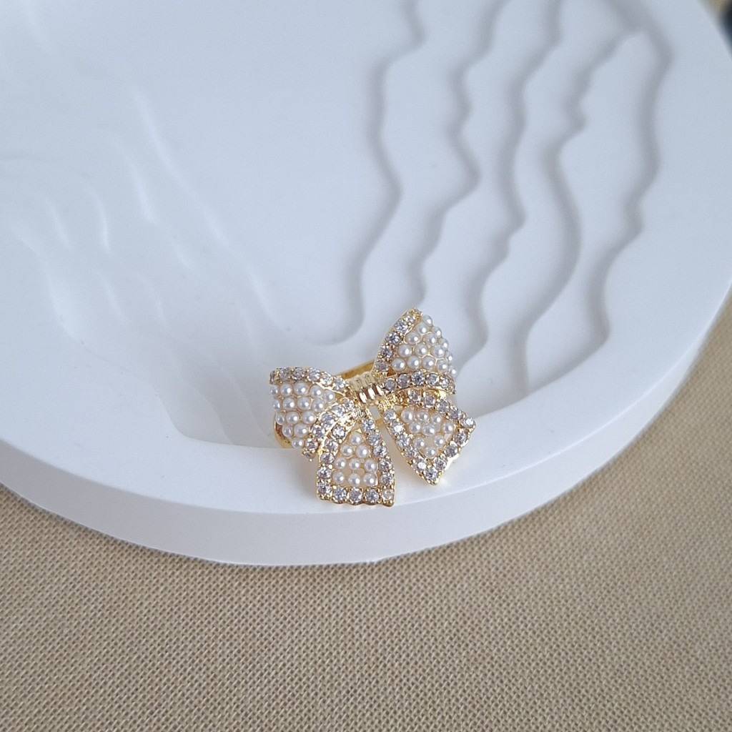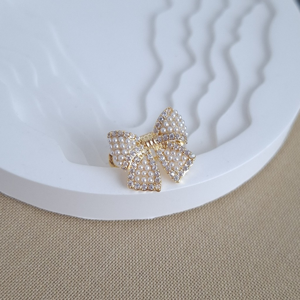 گوشواره ایرکاف پاپیون تمام مرواریدی با طراحی فشن و نمادین. بدون نیاز به سوراخ گوش، مناسب استایلهای لایهای و مدرن.