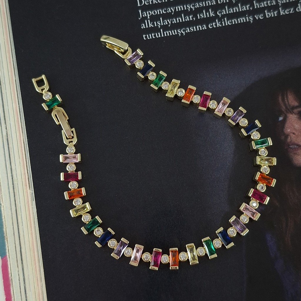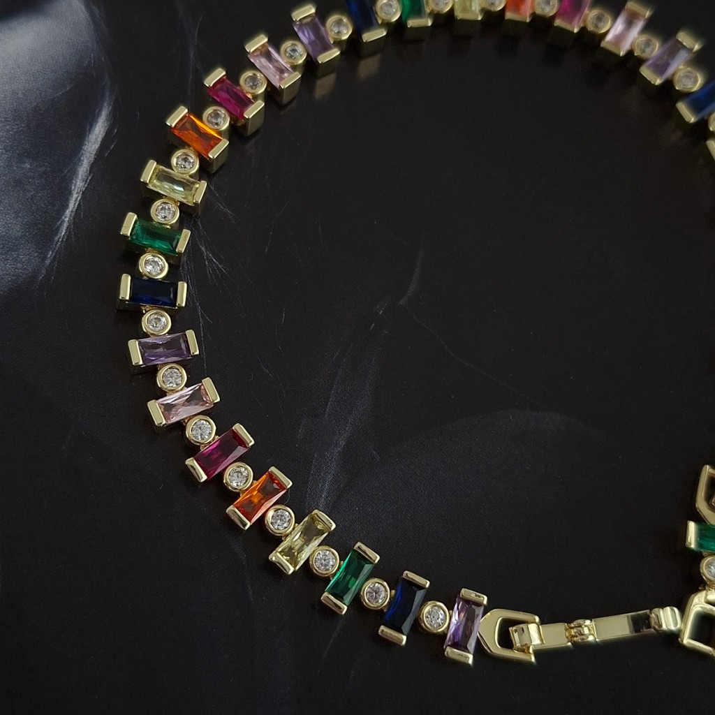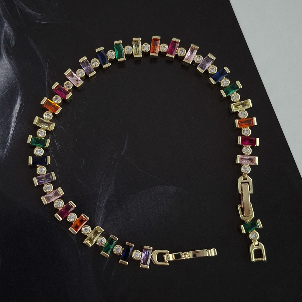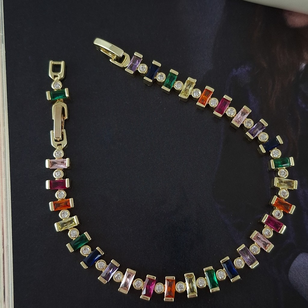 دستبند باگت رنگی و نگین دایره *