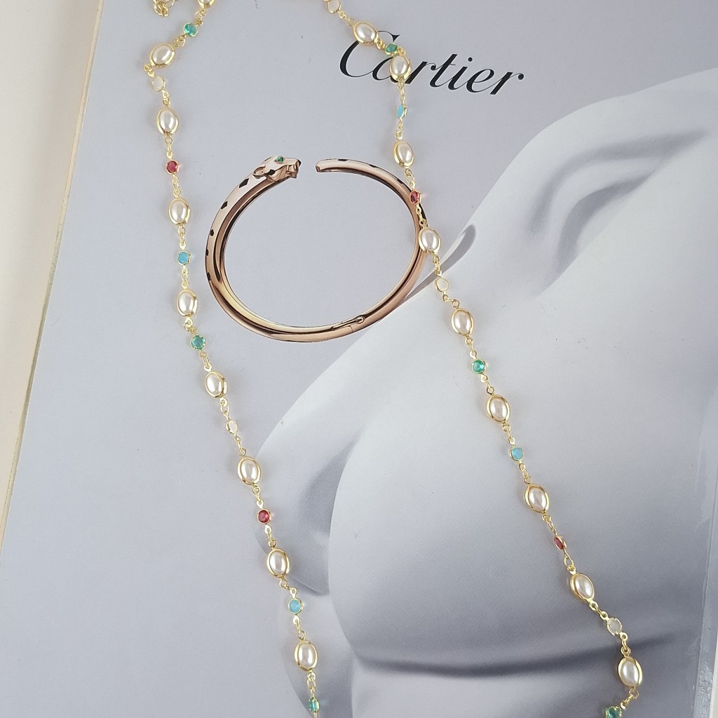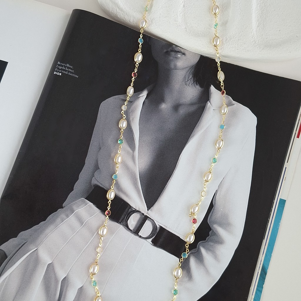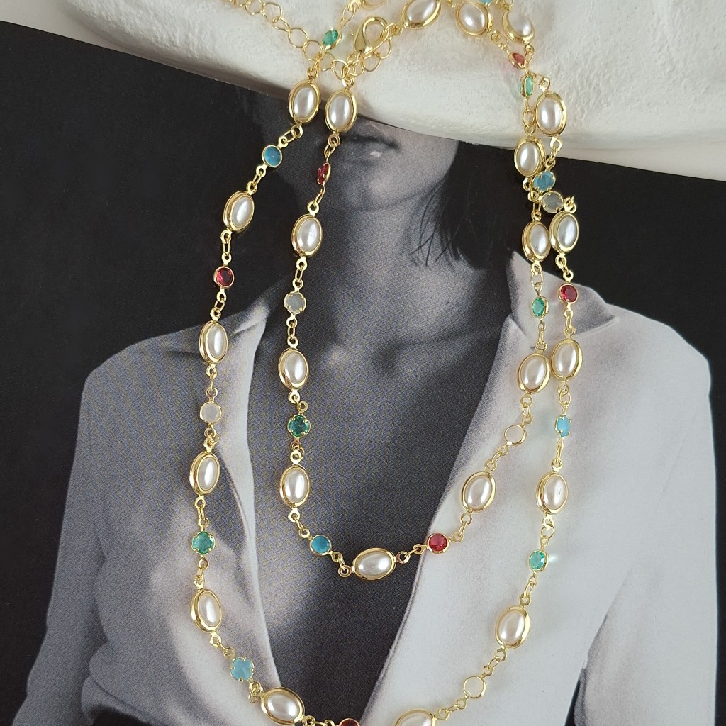 گردنبند رولباسی مروارید و نگین مولتی کالر
