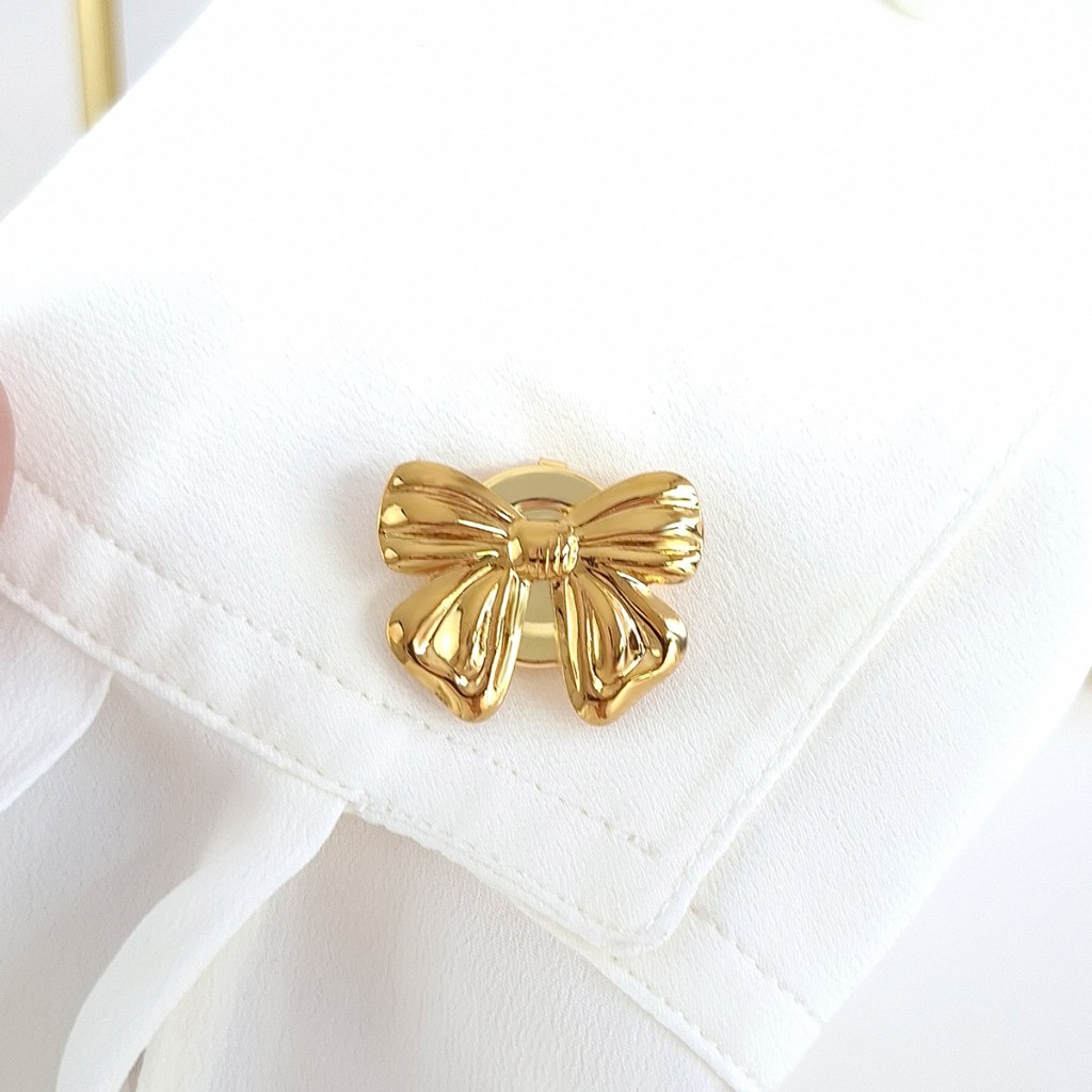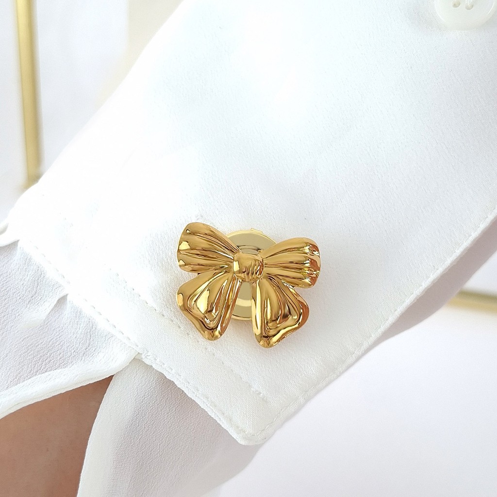 یکی از جذابترین و شیکترین اکسسوریهای Nilay Jewelry است که با طراحی ظریف پاپیون و رنگ طلایی براق، جلوهای خاص و لوکس به لباسهای شما میبخشد. این کاور دکمه مناسب انواع پوششها از مانتو و پیراهن گرفته تا شال و لباسهای رسمی است و میتواند ظاهر ساده لباسها را به استایلی متفاوت، جذاب و منحصر به فرد تبدیل کند.
