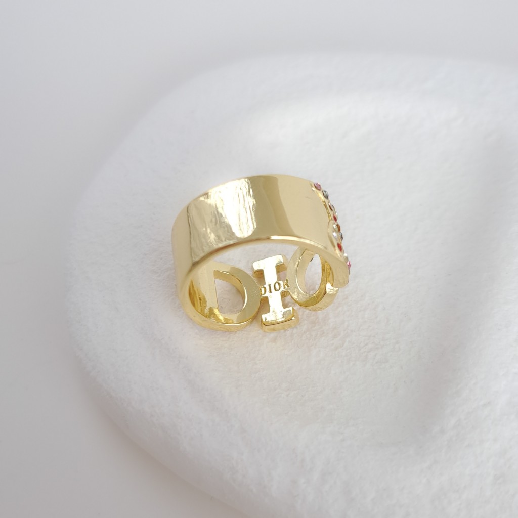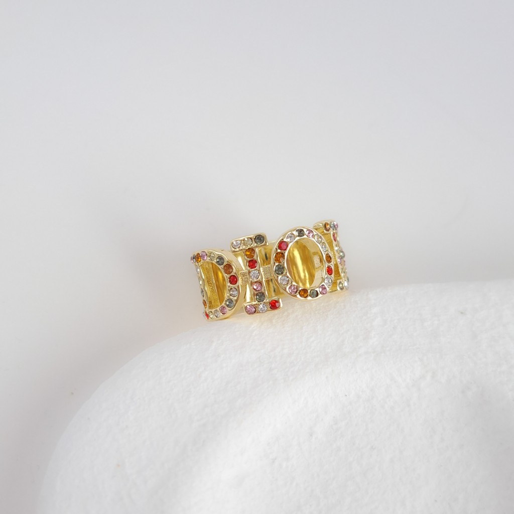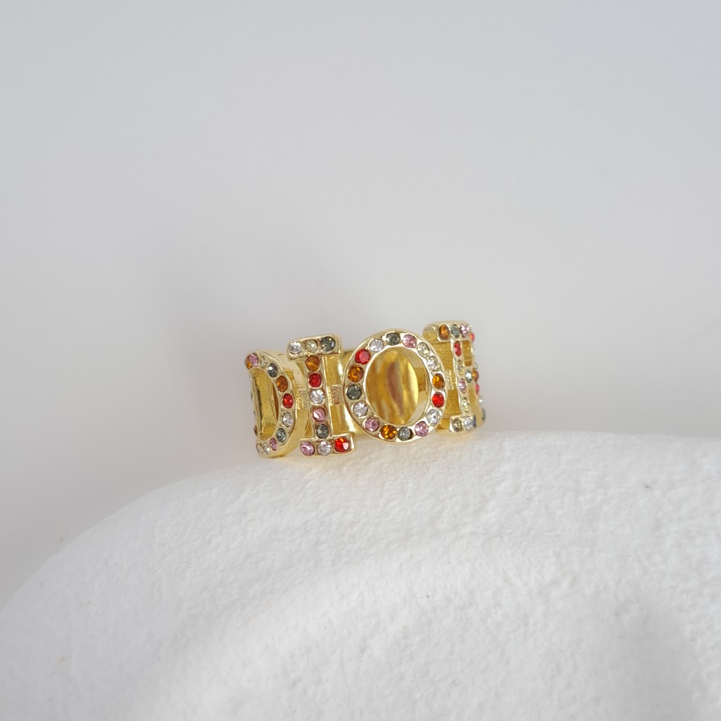 روی بدنه انگشتر، نام Dior بهصورت برجسته و چشمگیر طراحی شده و در میان آن نگینهای مولتیکالر (چند رنگ) درخشان کار شدهاند که جلوهای خاص و انرژیبخش به انگشتر میدهند. نگینهای رنگی بهگونهای انتخاب شدهاند که به راحتی با استایلهای متنوع، چه روزمره و چه مجلسی، قابل ست کردن باشند. همین موضوع باعث میشود این انگشتر تبدیل به یکی از پرکاربردترین زیورآلات شما شود.