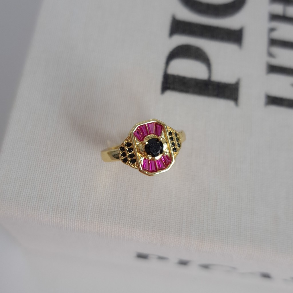 نگینهای صورتی با تراش دقیق، در نور جلوهای خیرهکننده ایجاد میکنند و رنگ گرم و لطیف آن با انواع استایلها هماهنگ میشود. این انگشتر با طراحی باریک و سبک، راحتی بالایی در استفاده طولانیمدت دارد و برای استفاده روزمره، مهمانی یا هدیه دادن بسیار مناسب است.
