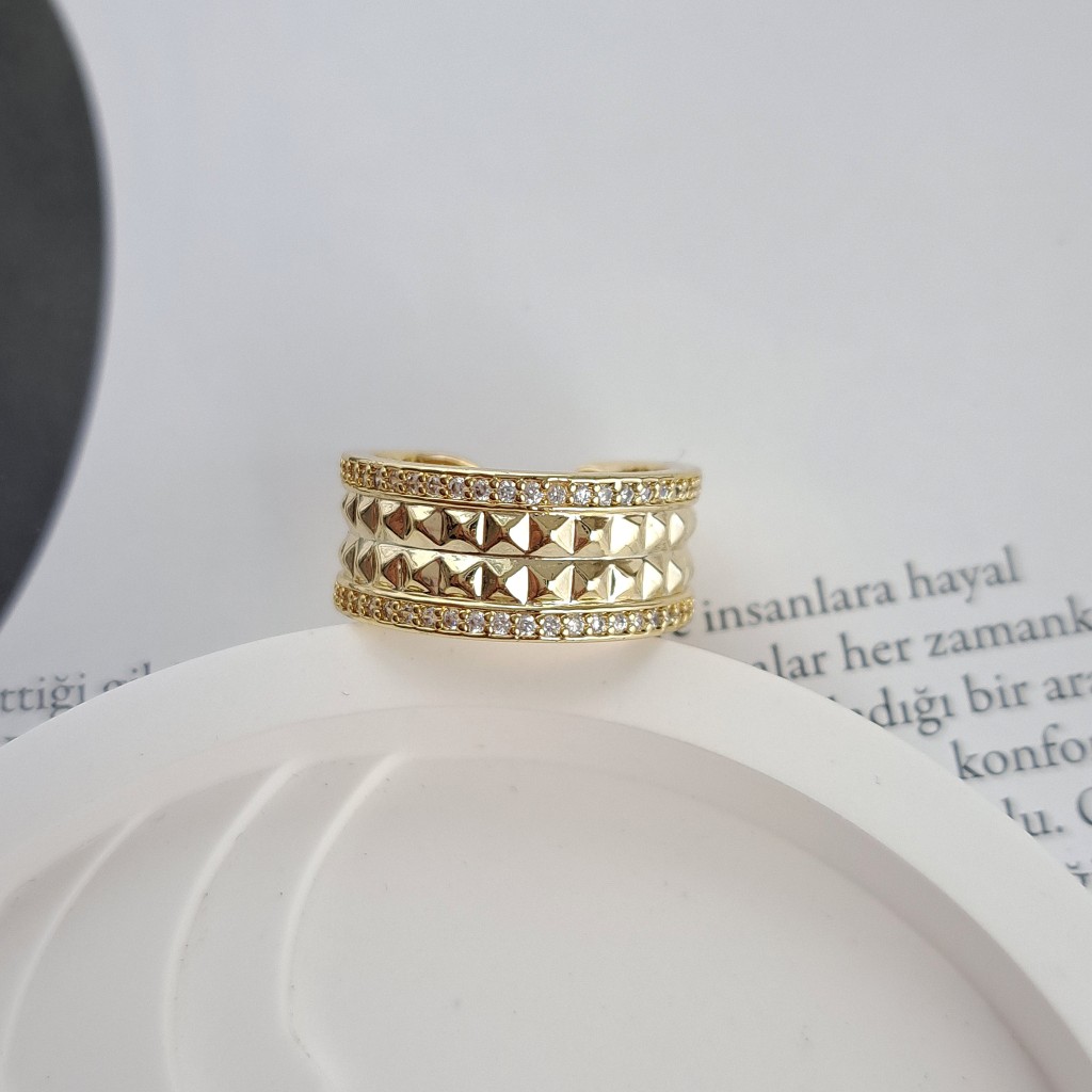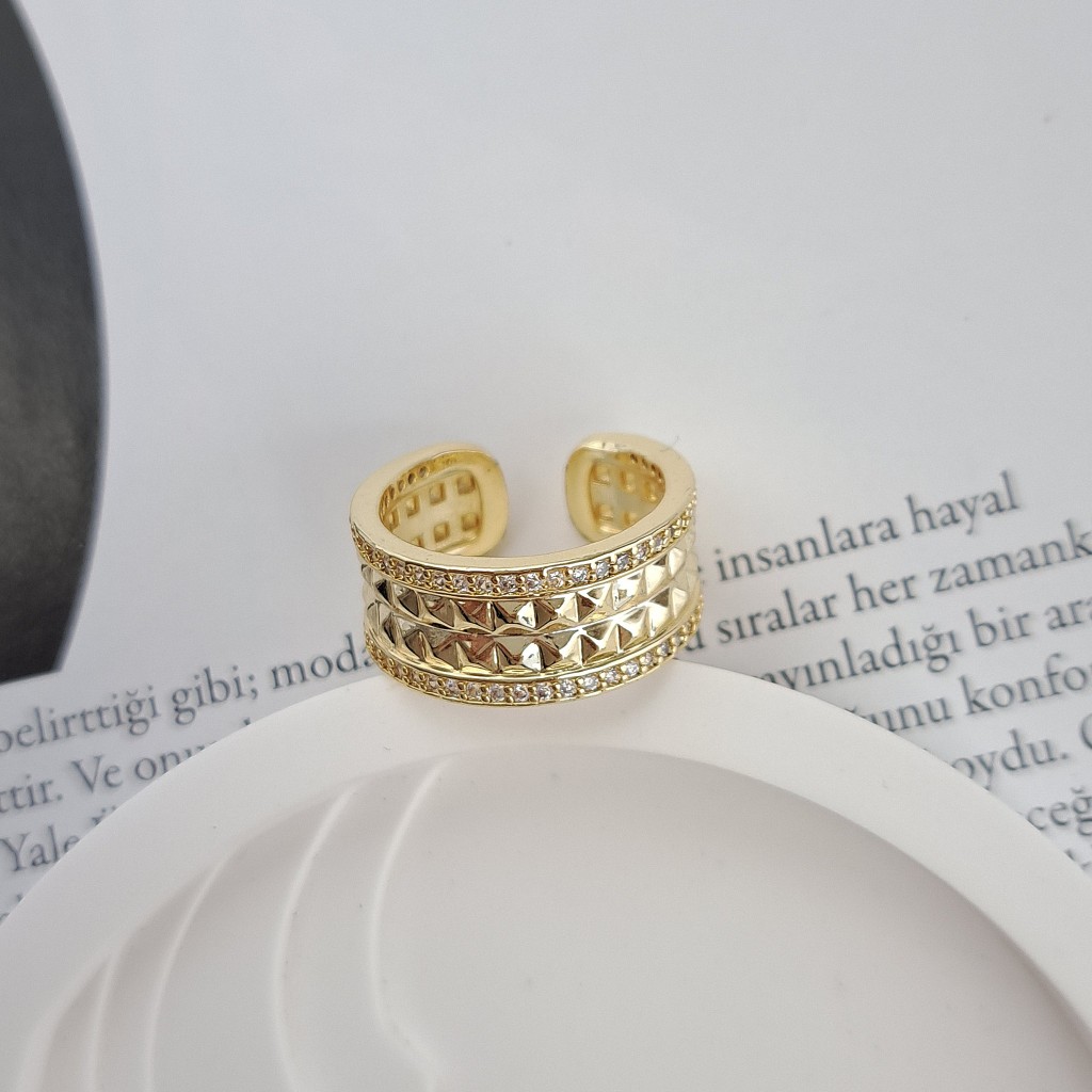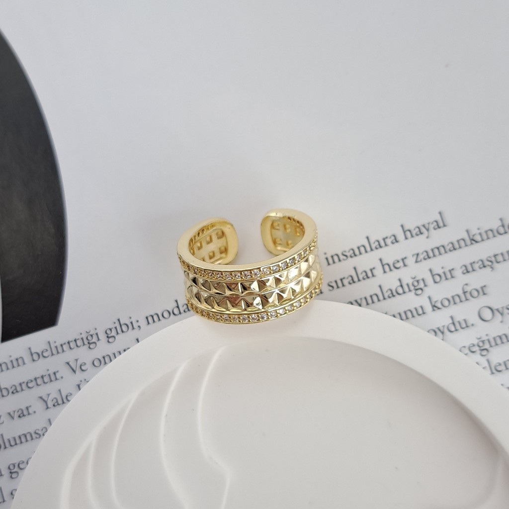 نگینهای کار شده روی بدنه انگشتر، بهگونهای قرار گرفتهاند که درخشندگی کنترلشده و شیک ایجاد کنند؛ یعنی زیبایی آن چشمگیر است اما هرگز از حد نمیگذرد. همین ویژگی باعث میشود بتوانید آن را هم در استایل روزانه شیک و هم برای موقعیتهای رسمی و مهم استفاده کنید. این انگشتر از آن دسته زیورآلاتی است که به هر دست، حالت ظریفتر و خوشفرمتری میدهد و بهمحض قرار گرفتن در انگشت، استایل شما را حرفهایتر و کاملتر نشان میدهد.