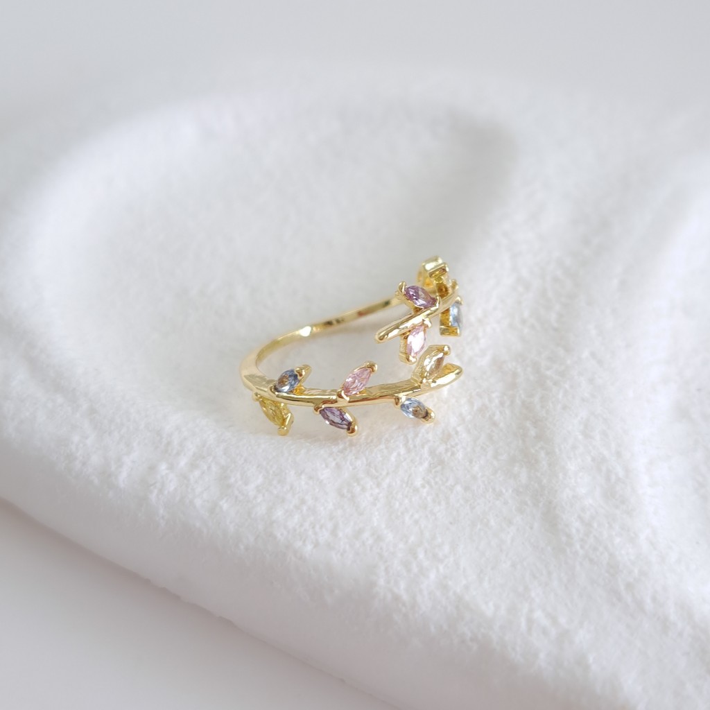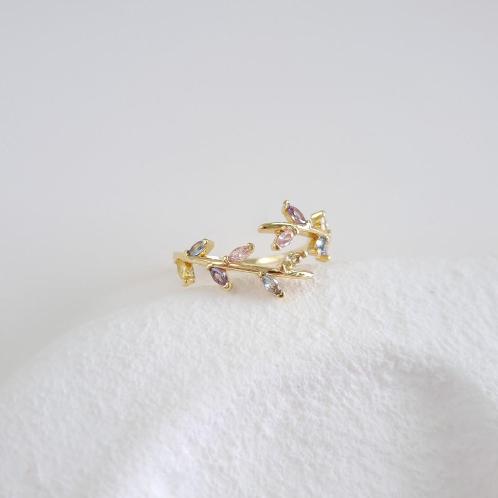 طراحی این انگشتر از شاخههای ظریف الهام گرفته که به دور انگشت پیچیدهاند و با رنگهای ملایم و براق تزئین شدهاند. هر شاخه نمادی از رشد، زندگی و زیبایی طبیعت است. رنگهای بهکاررفته در طراحی آن، جلوهای جوانپسند و مدرن ایجاد کردهاند و باعث میشوند انگشتر بهراحتی با لباسهای رنگی یا استایلهای خنثی هماهنگ شود.
