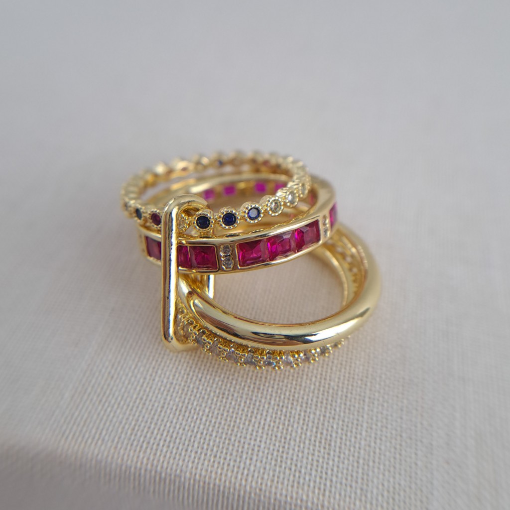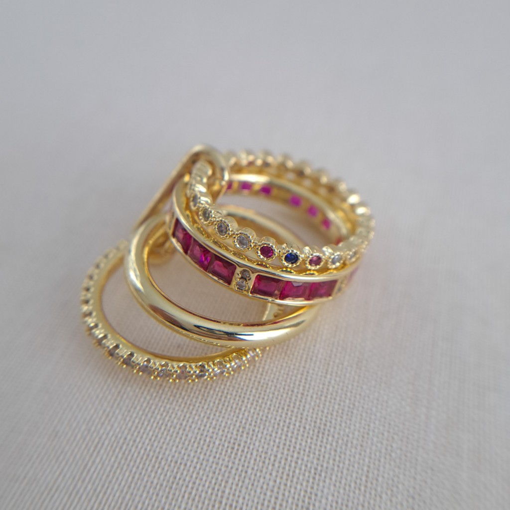 انگشتر استک 4 تایی رینگ باگت سرخابی طلایی