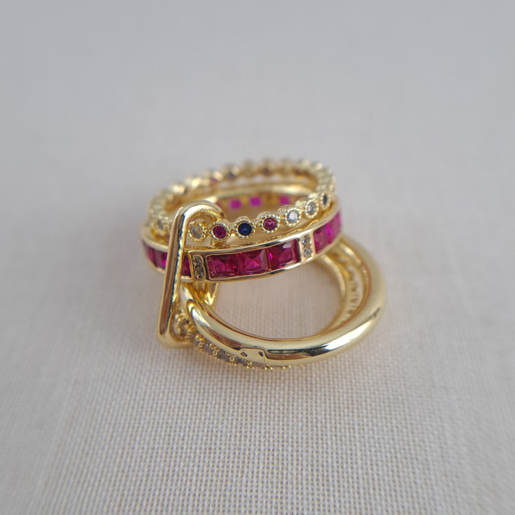 یکی از ویژگیهای برجسته این محصول، قابلیت استک شدن آن است؛ یعنی میتوانید حلقهها را به صورت جداگانه یا ترکیبی استفاده کنید و هر بار استایلی متفاوت و خاص داشته باشید. این انعطاف در طراحی باعث میشود انگشتر با انواع اکسسوریها و استایلها، چه روزمره و چه رسمی، بهراحتی ست شود.