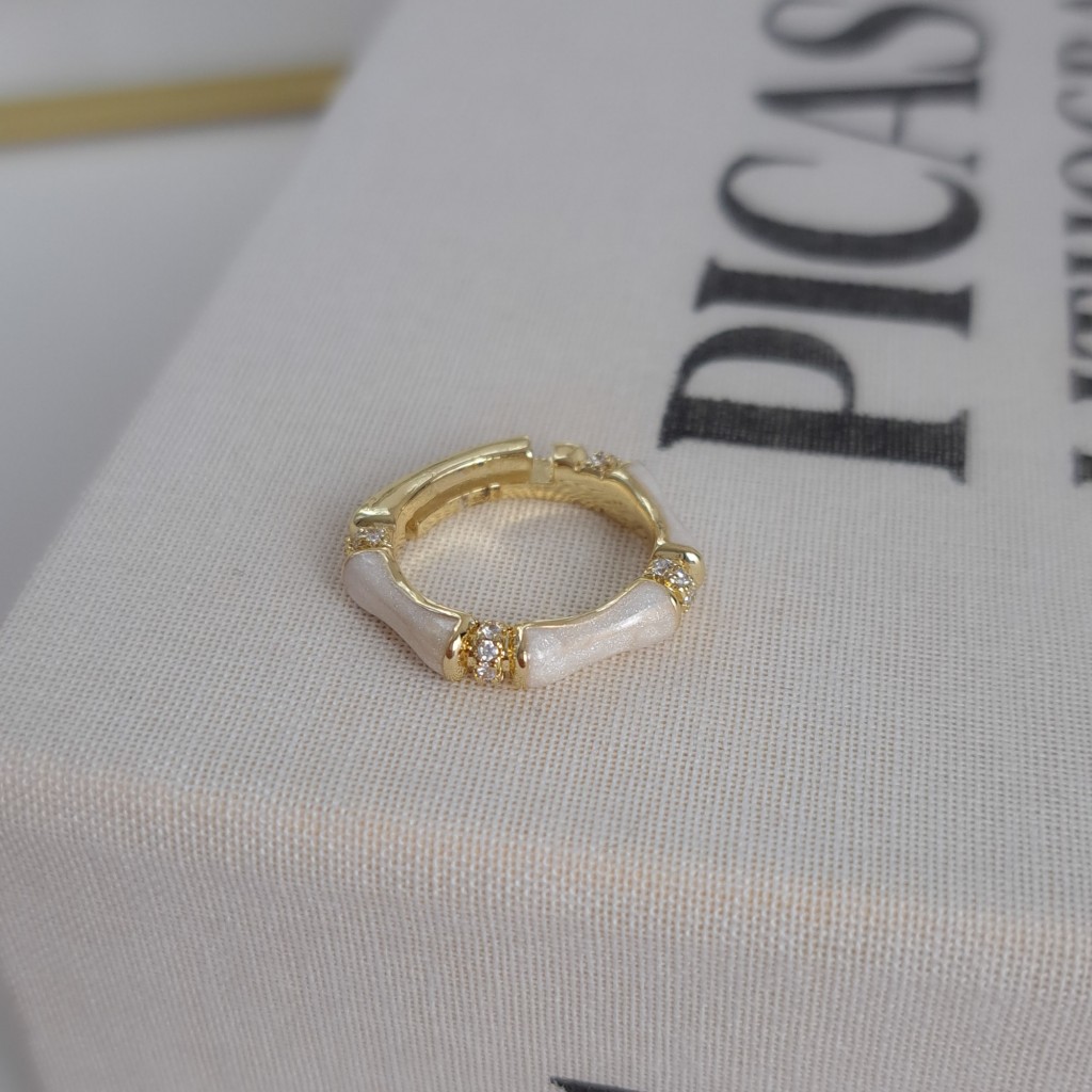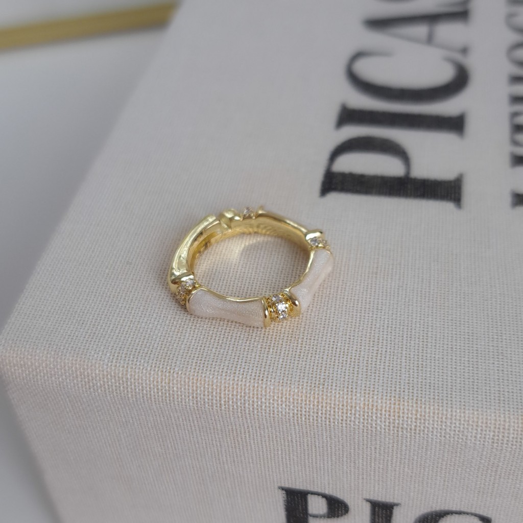 در طراحی این انگشتر، از میناکاری ظریف با شاینهای ریز استفاده شده است که درخششی ملایم و زیبا ایجاد میکند. این جزئیات ظریف باعث میشود انگشتر در نور، جلوهای درخشان و جذاب داشته باشد و به راحتی توجه اطرافیان را جلب کند. رنگ سفید میناکاری نیز با هر رنگ پوستی سازگار است و امکان ستکردن با سایر زیورآلات و استایلهای مختلف را فراهم میکند.