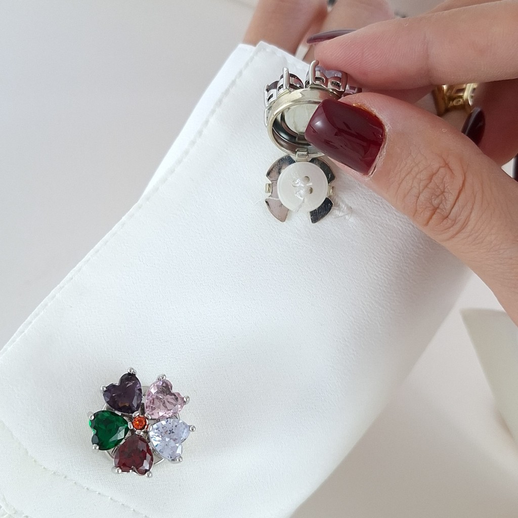 در ترکیب با مانتوهای تکرنگ، کتهای رسمی یا پیراهنهای ساده، این کاور دکمه مانند یک نقطهی نور روی پارچه میدرخشد. میتوانید آن را با اکسسوریهایی چون گوشوارههای نگیندار یا سنجاقهای کوچک مو ست کنید تا هماهنگی ظریفی در استایل شما شکل بگیرد. طراحی گل و قلب در کنار درخشش رنگی کریستالها، ترکیبی از احساس و ظرافت را بهوجود آورده که با سبکهای کلاسیک و مدرن بهخوبی هماهنگ میشود.