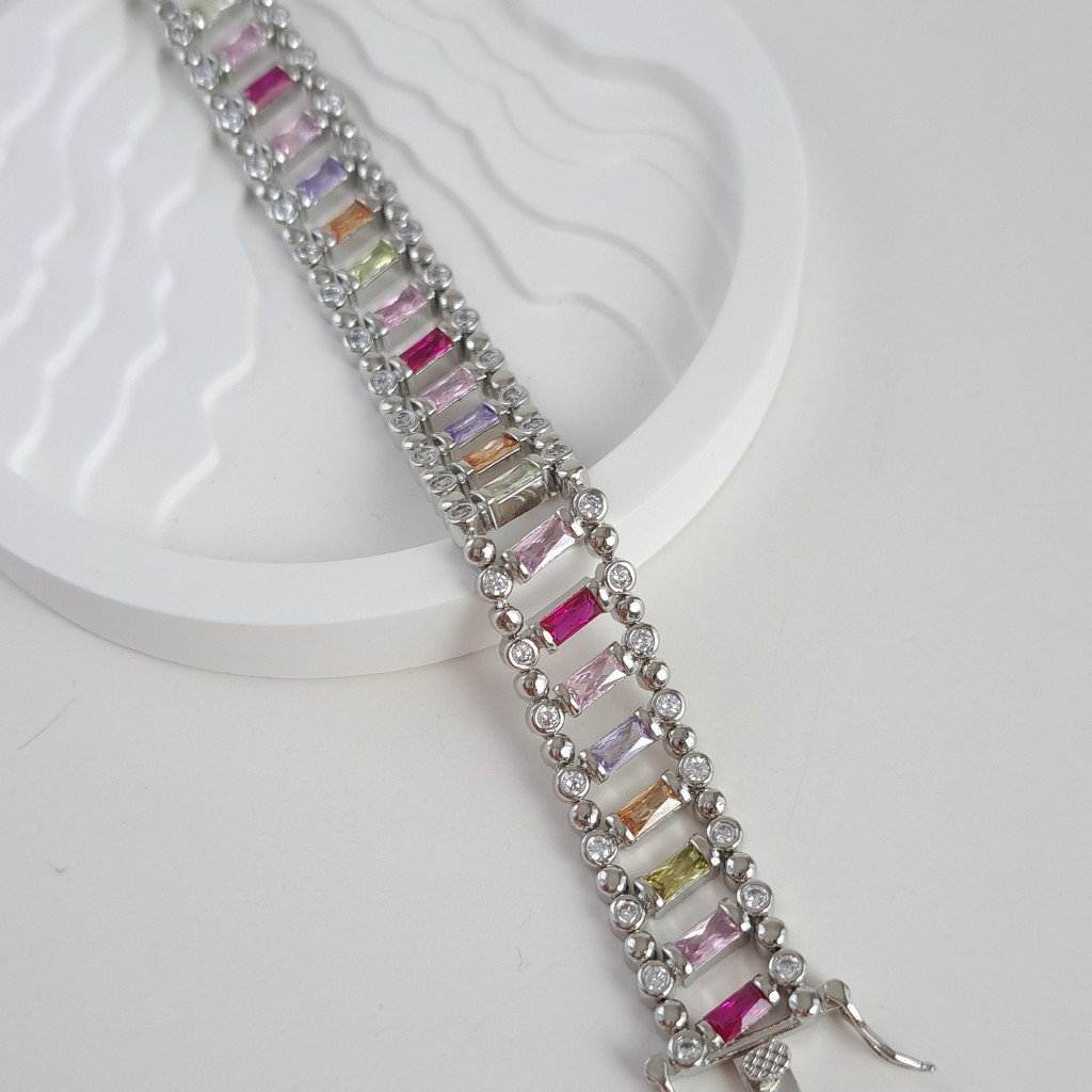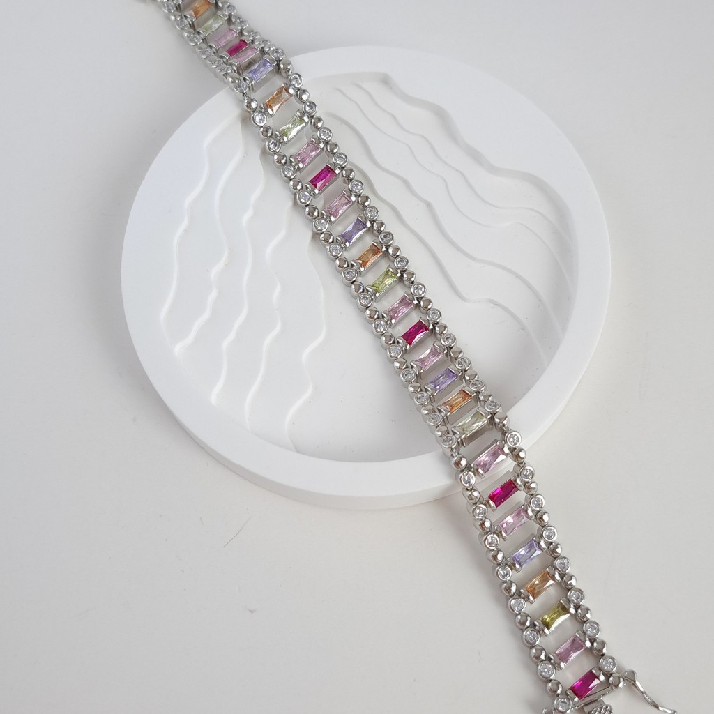 دستبند طرح طلای نقرهای باگت رنگی*