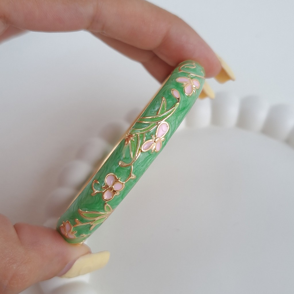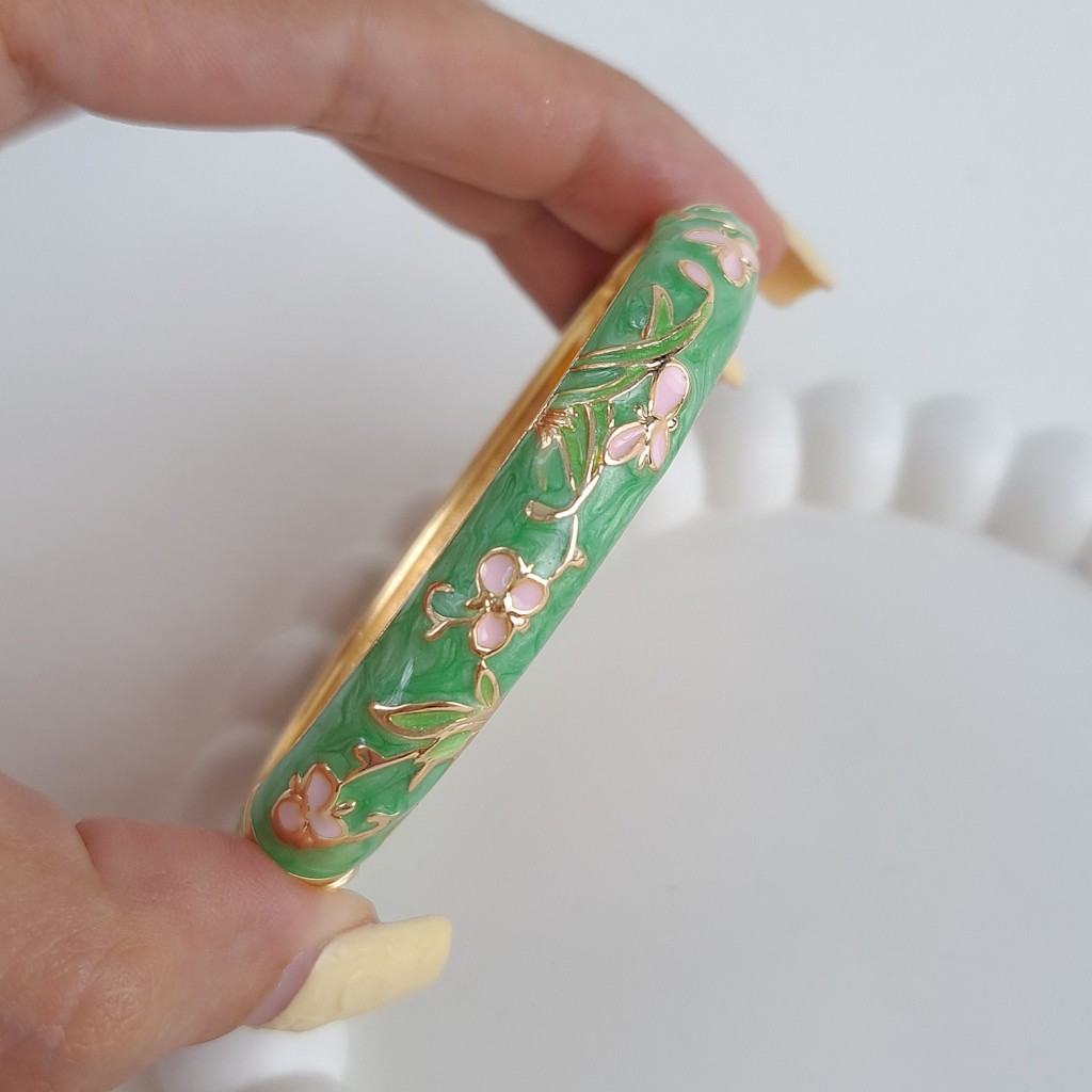 دستبند بنگل میناکاری سبز پروانه صورتی*