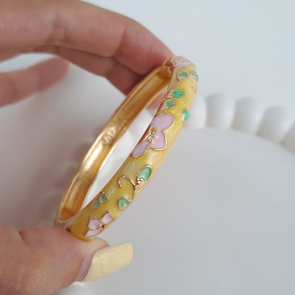 دستبند بنگل میناکاری زرد گل نیلوفر*