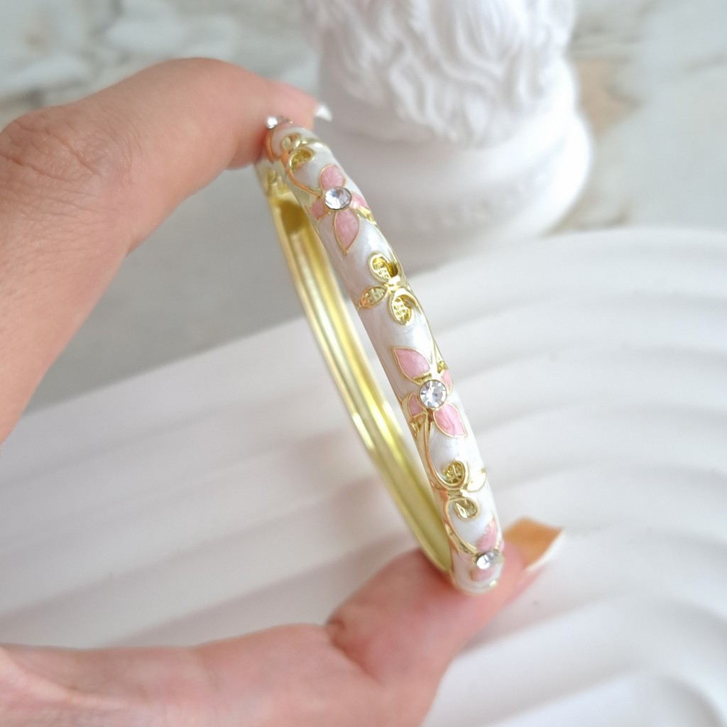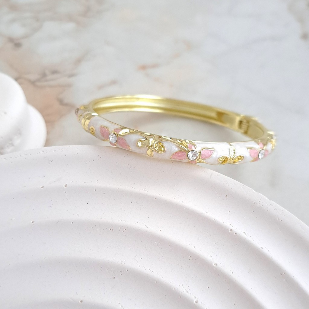 دستبند میناکاری سفید صدفی با گل گلبهی*