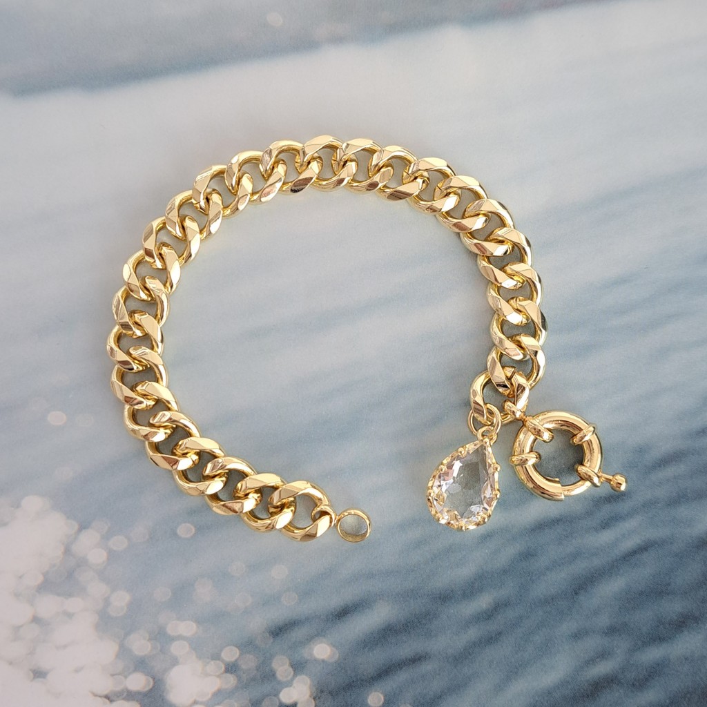 در این مدل خاص، آویز اشک به دستبند اضافه شده تا جلوهای لطیفتر و زنانهتر ایجاد کند.