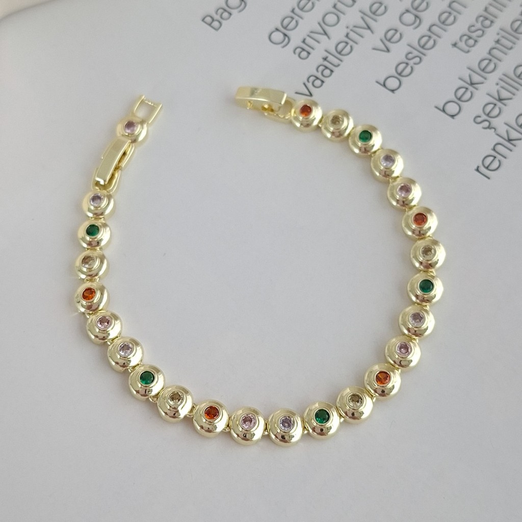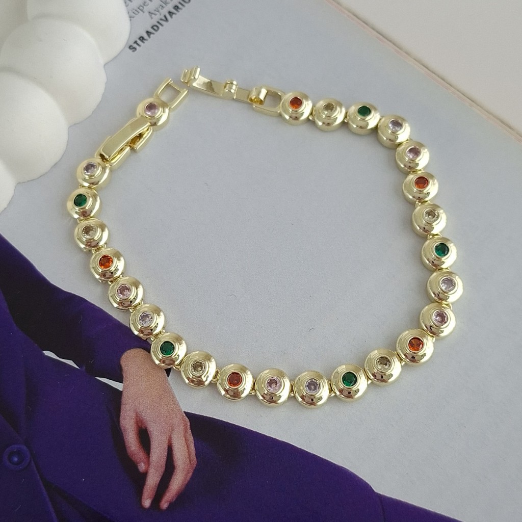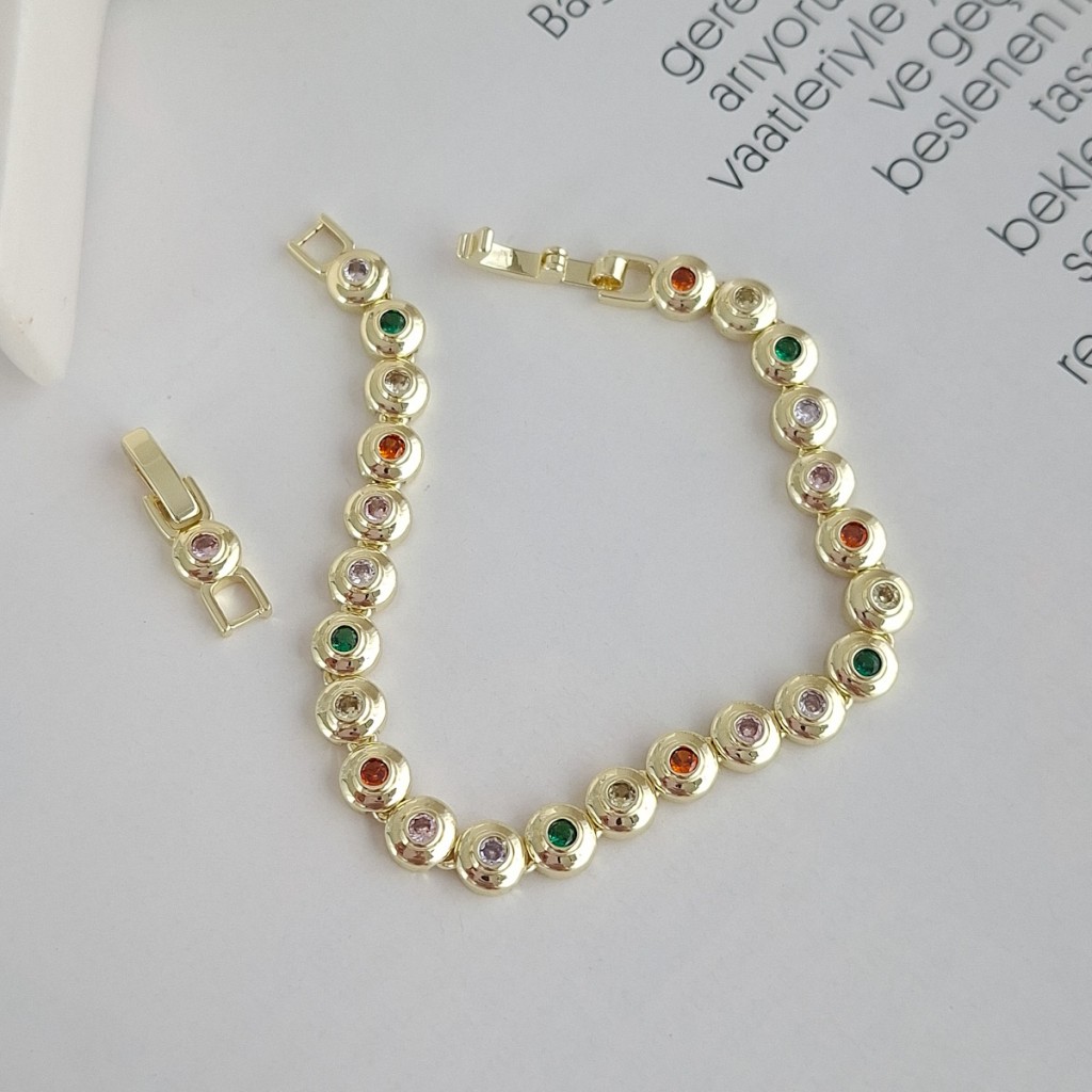 دستبند دایره دایره نگین رنگی طرح طلا *