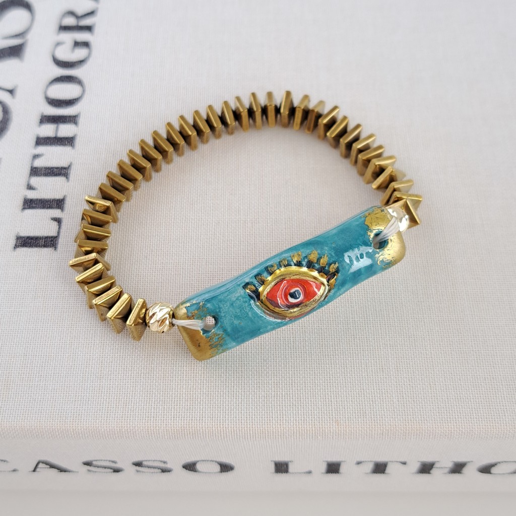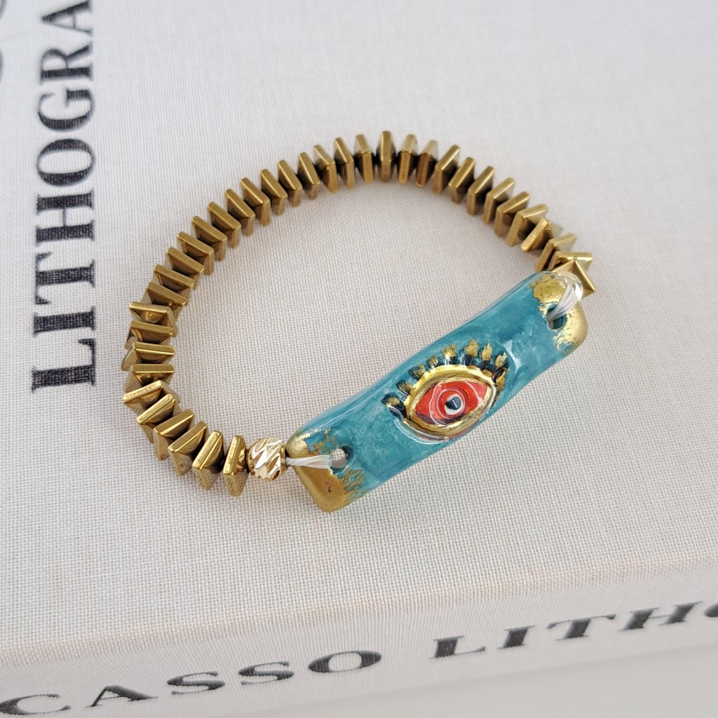 سنگ هماتیت از دیرباز بهعنوان سنگی با قدرت جذب انرژی منفی، افزایش تمرکز ذهنی و تقویت اعتمادبهنفس شناخته شده است. ترکیب آن با مهرههای سرامیکی کورهای که در دمای بالا ساخته و لعابکاری شدهاند، جلوهای خاص و درخشان به دستبند میبخشد. این هماهنگی میان رنگ تیره و براق هماتیت با رنگهای هنری و لعابدار سرامیک، باعث شده تا این محصول به یک اکسسوری چشمگیر و متفاوت تبدیل شود.
