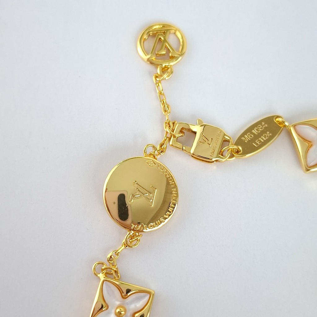 دستبند لویی ویتون صدف سفید پایه طلایی مستر**