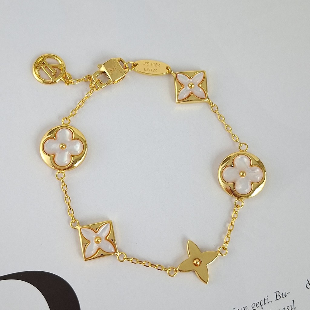 خرید دستبند طرح LV صدف سفید | طلایی کلاسیک و سبک مُد روز زنانه
