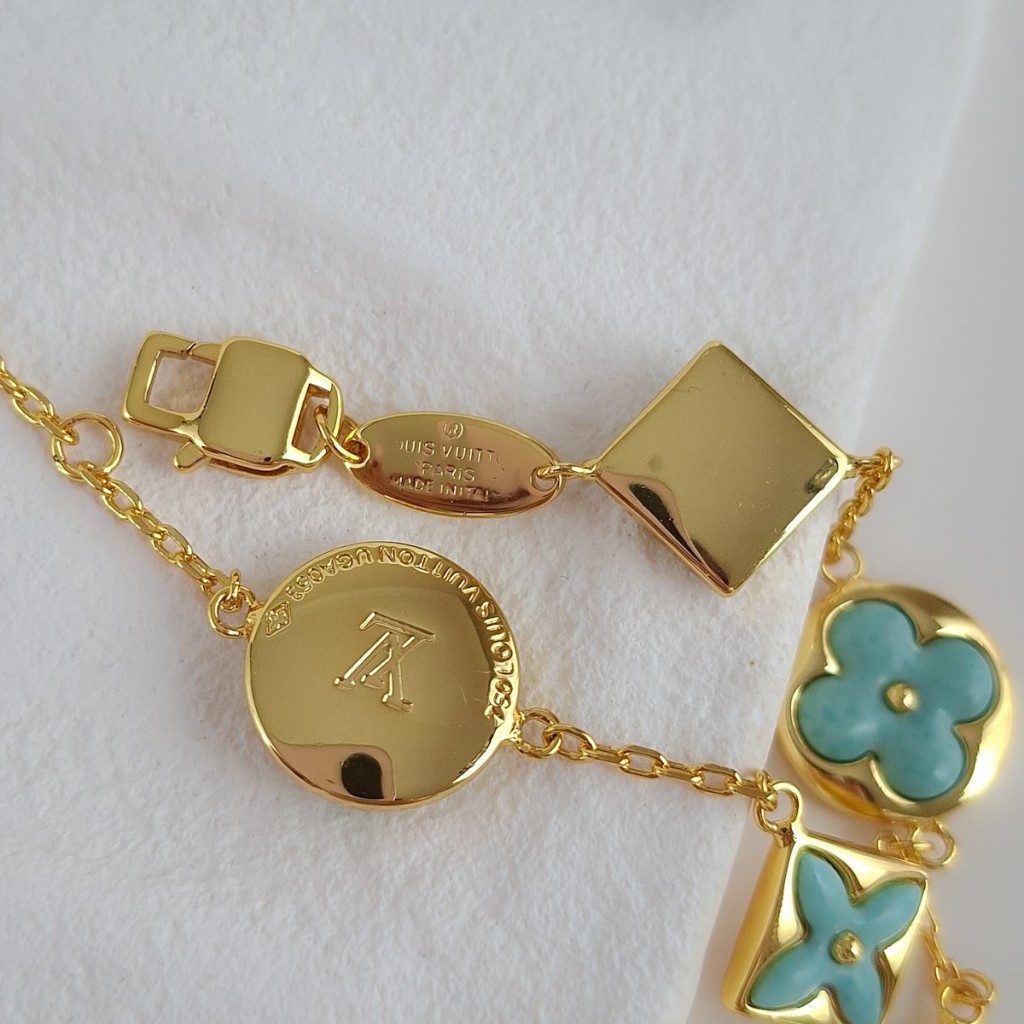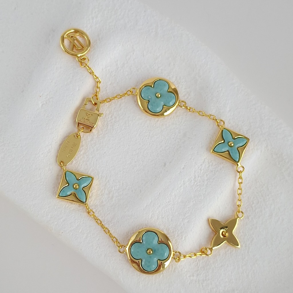 دستبند طرح LV با صدف فیروزهای، کیفیت مستر