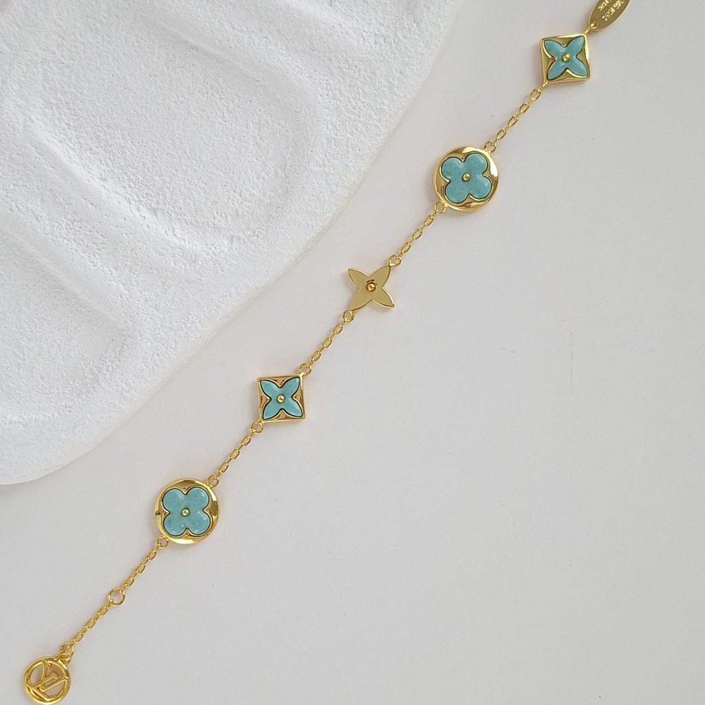 دستبند لویی ویتون صدف آبی فیروزهای پایه طلایی (مستر) **