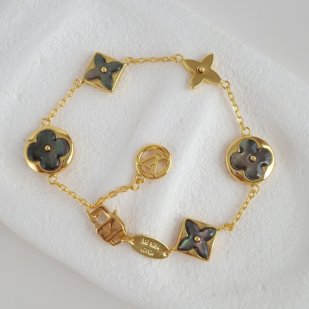 دستبند طرح LV با صدف تیره، کیفیت مستر