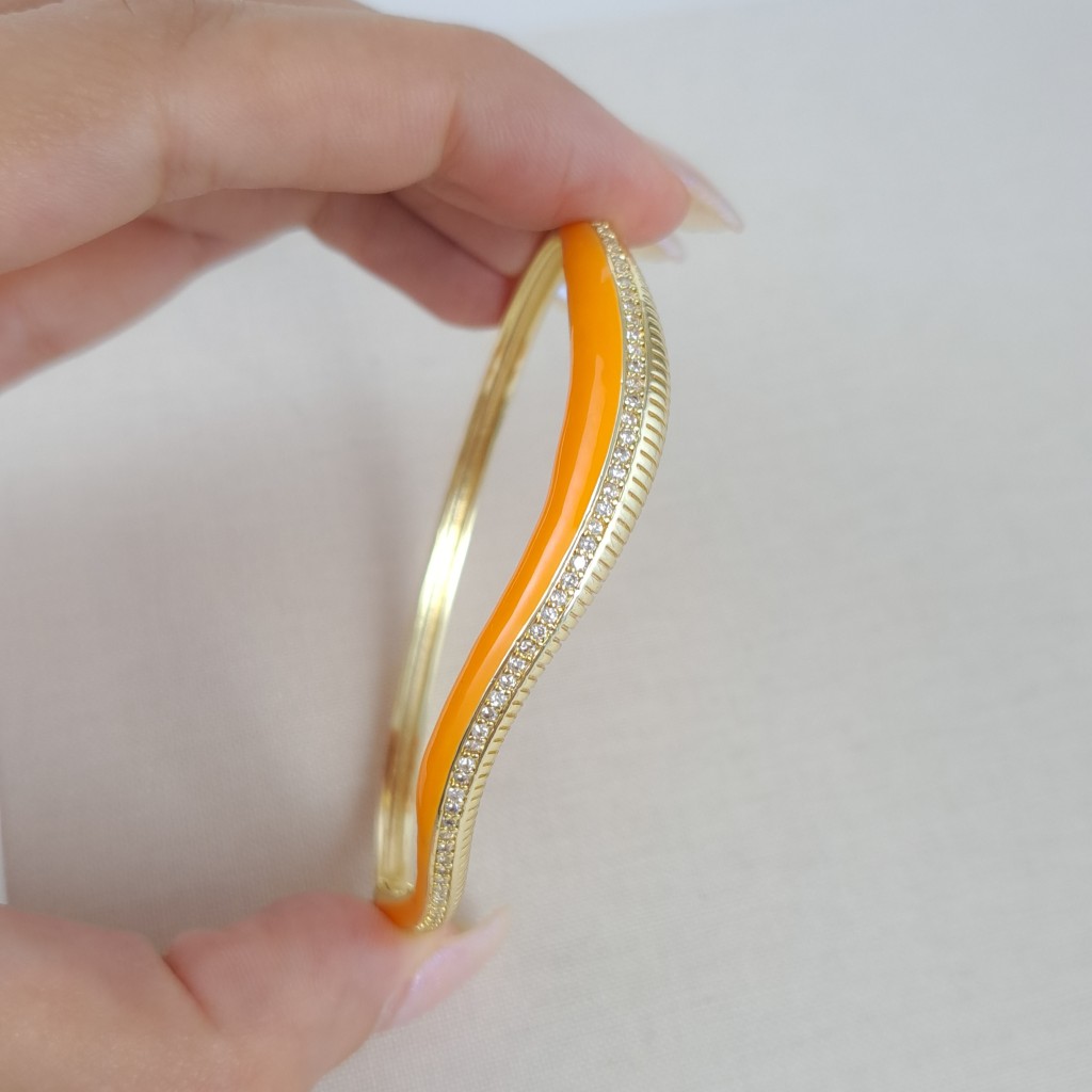 دستبند موج طرح طلا میناکاری نارنجی نیلای