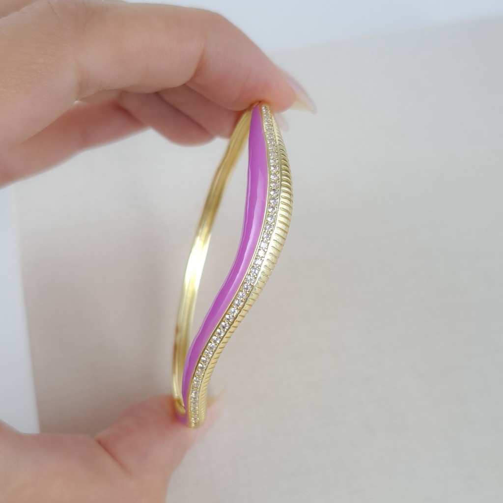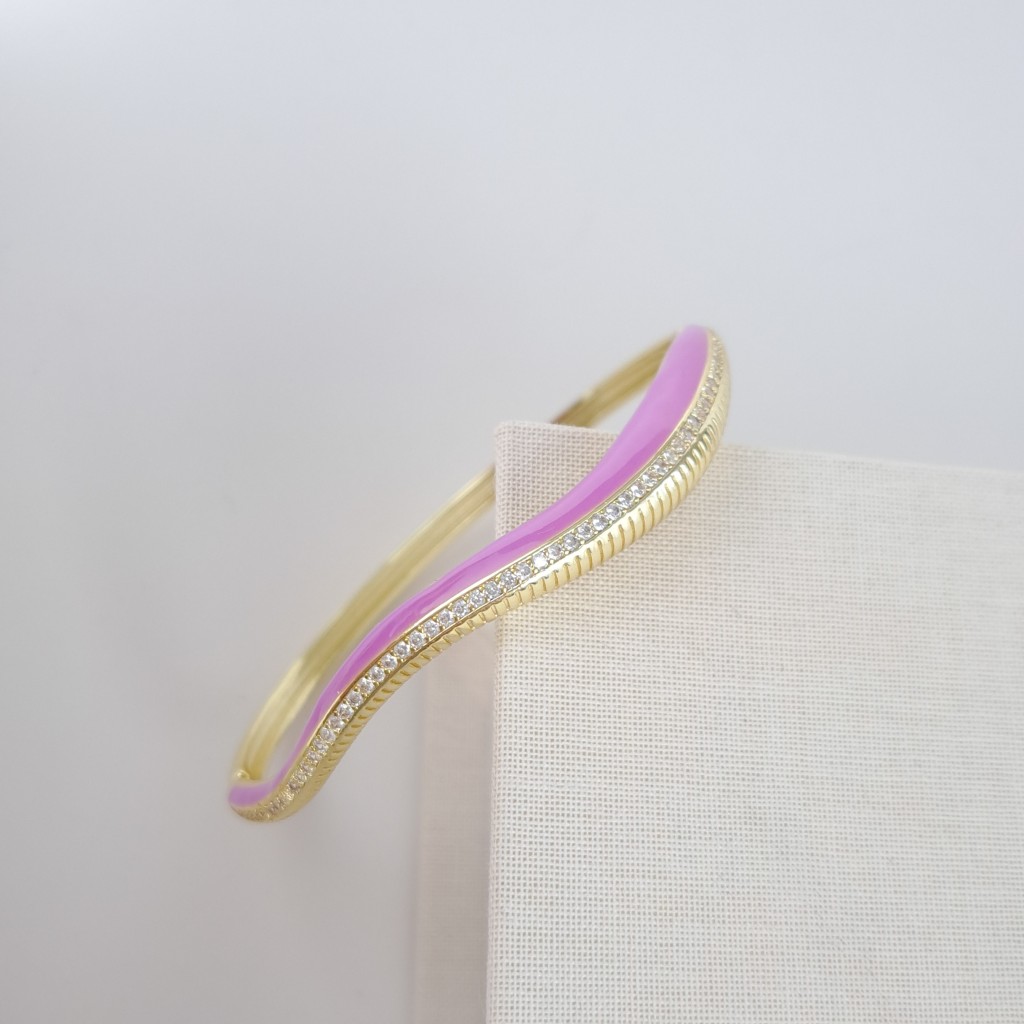 دستبند موج طرح طلا میناکاری صورتی*