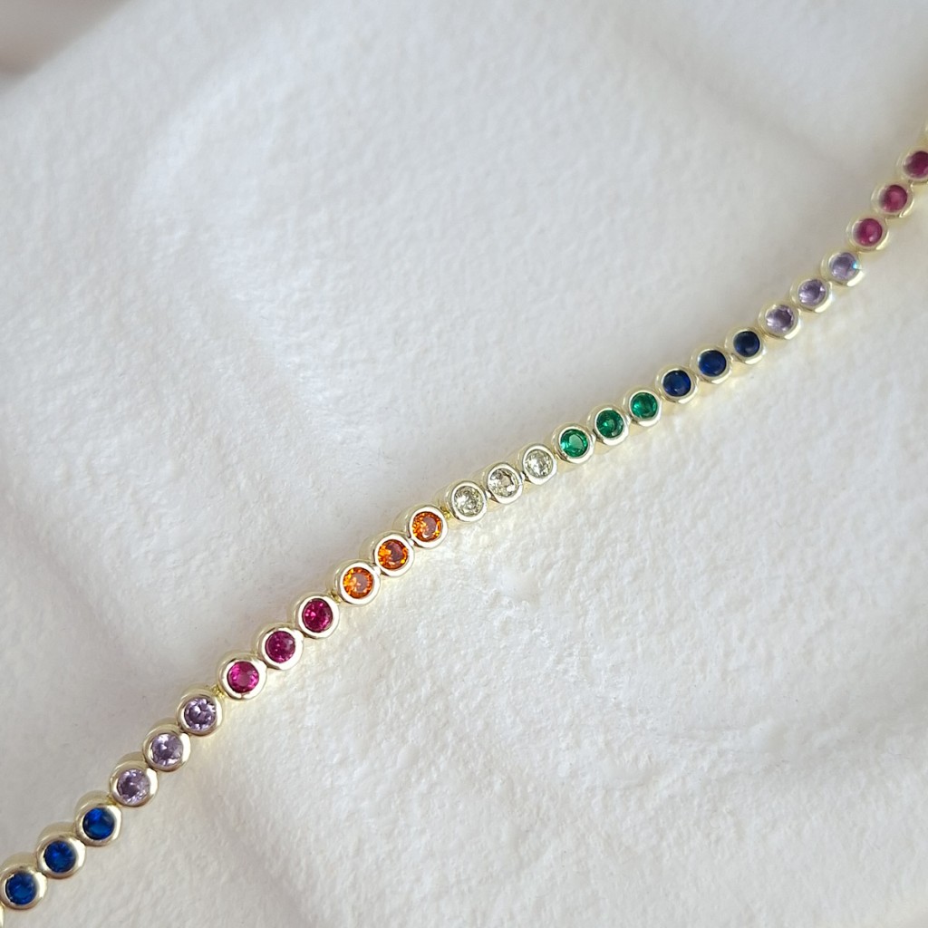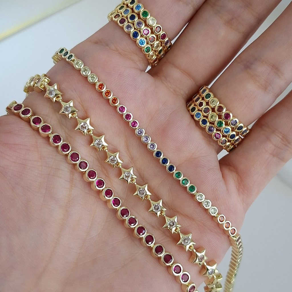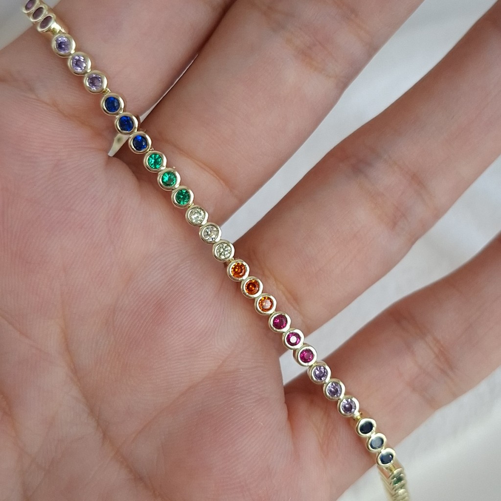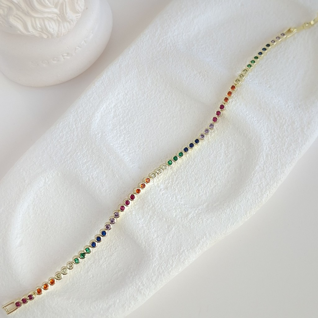 دستبند نگین زیرکنیوم مولتی کالر دایره*