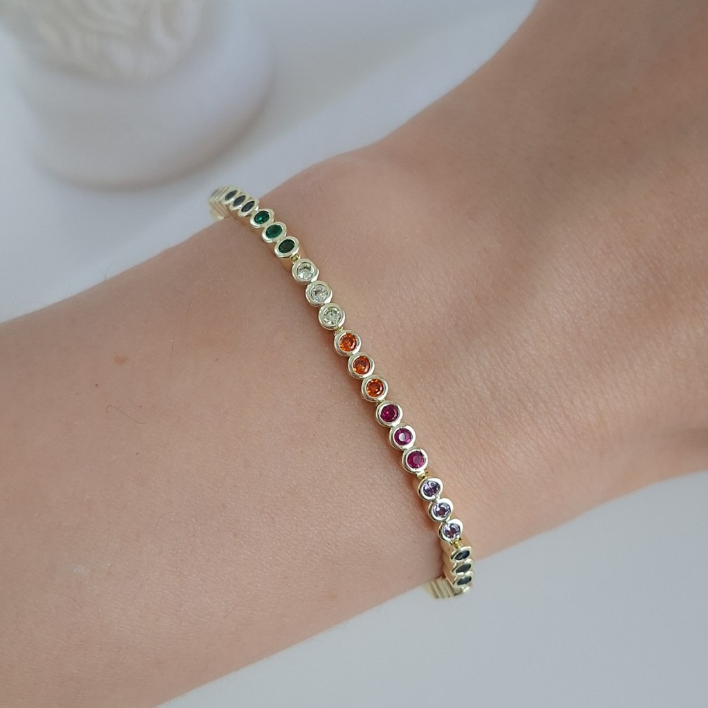 دستبند نگین زیرکنیوم مولتی کالر دایره: جلوهای بینظیر برای هر استایل