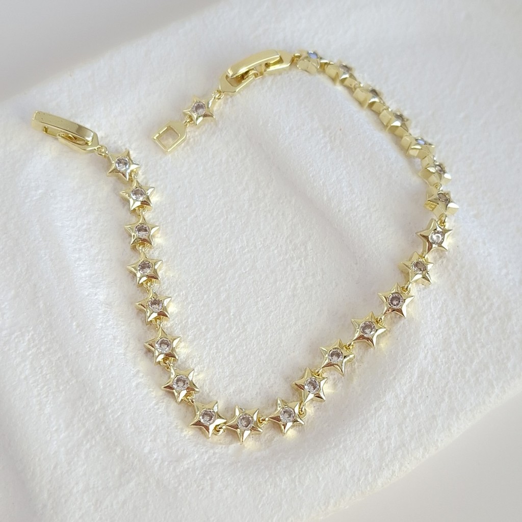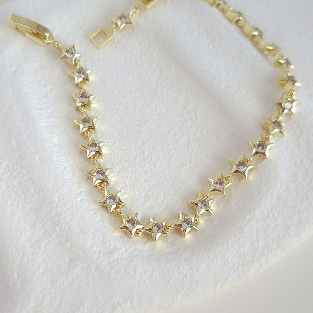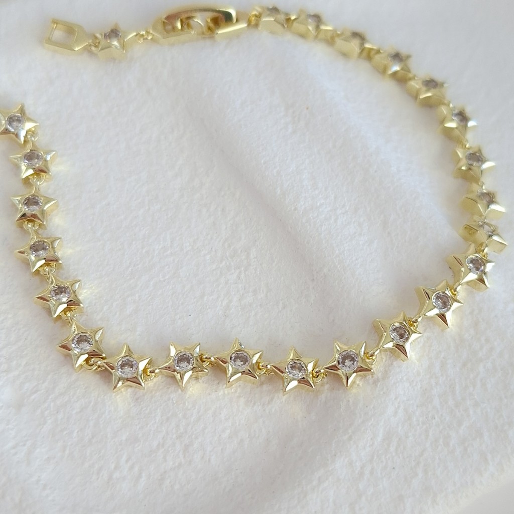 دستبند ستاره ستاره نگین زیرکنیوم طلایی: درخشش آسمانی در مچ دست شما