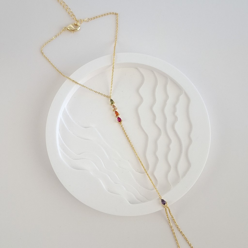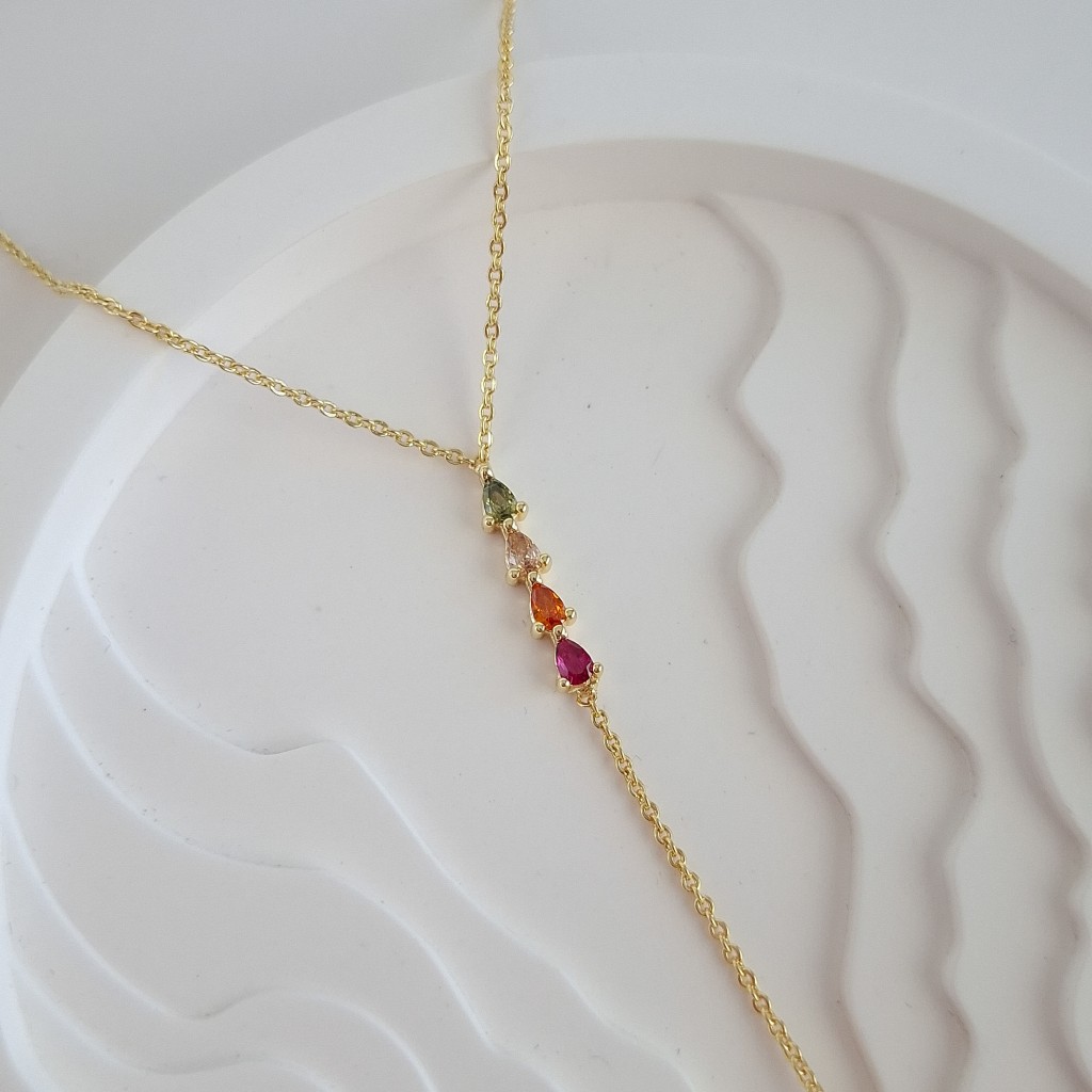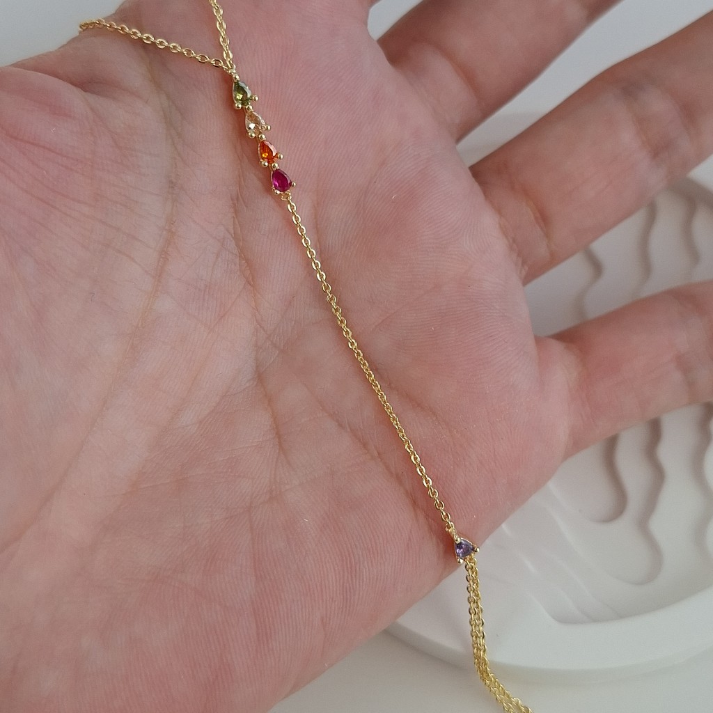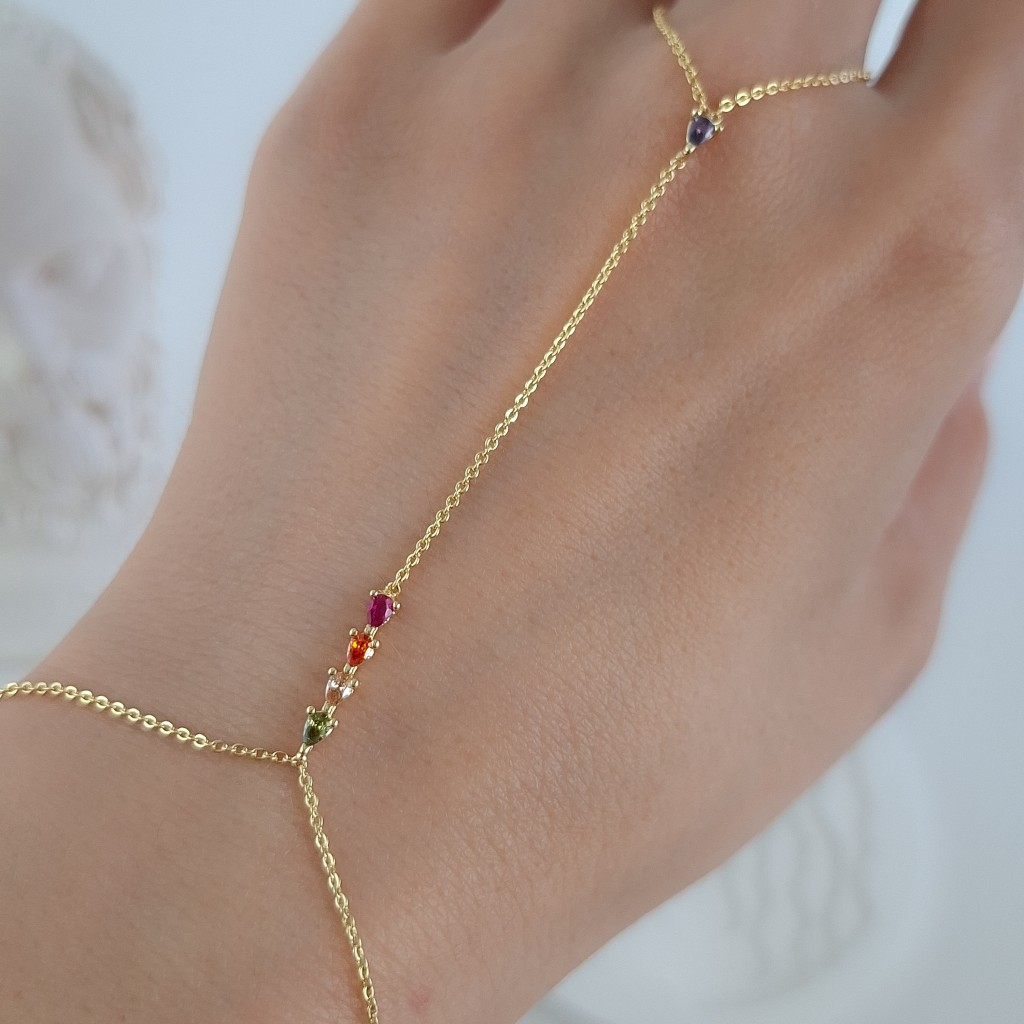 دستبند تمیمه نگین اشک مولتیکالر انتخابی مناسب برای افرادیست که به دنبال اکسسوری خاص، رنگی و متمایز هستند؛ مدلی که هم در استایلهای ساده و هم در ترکیبهای جسورانه، جلوهای چشمگیر و منحصربهفرد ایجاد میکند.