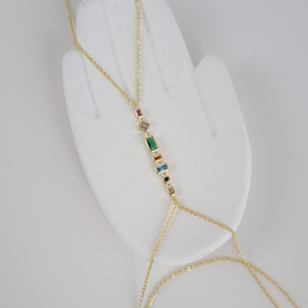 دستبند تمیمه نگینهای مستطیل رنگی نیلای