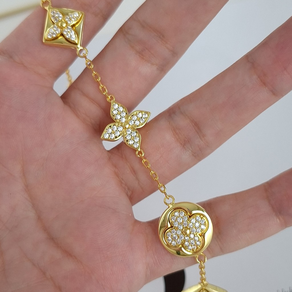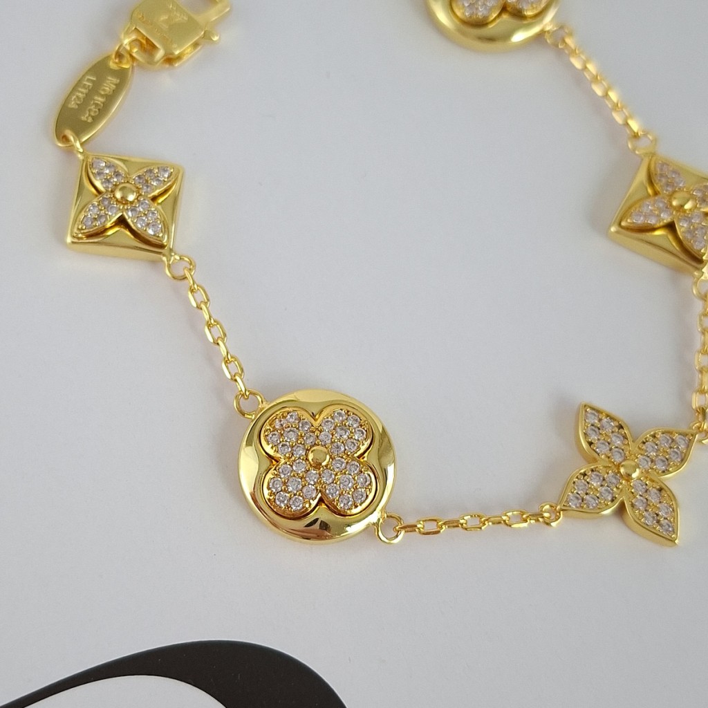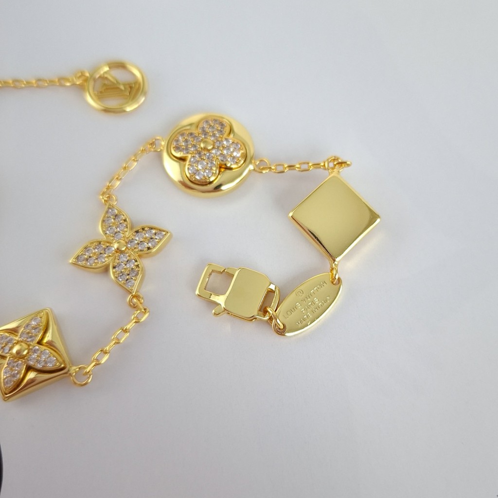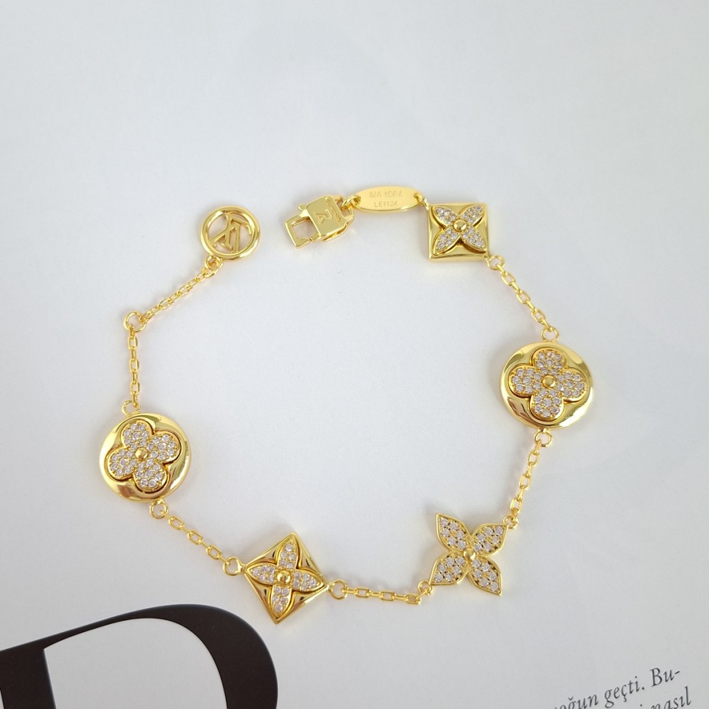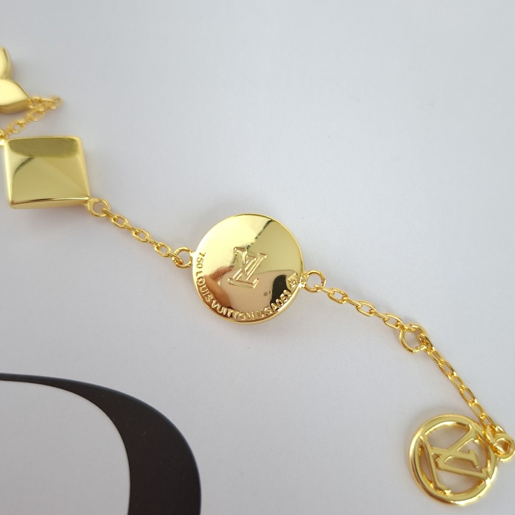 دستبند لویی ویتون نگین دار پایه طلایی مستر**