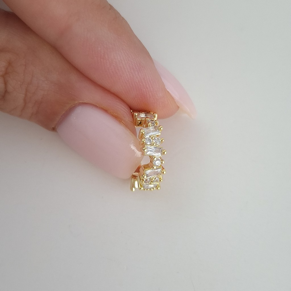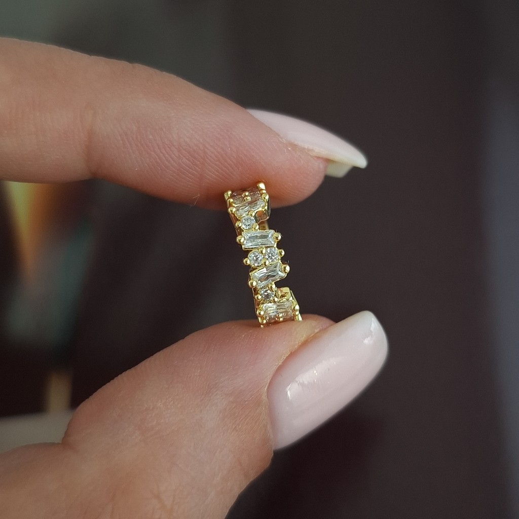 گوشواره ایرکاف طلایی باگت و نگین؛ مناسب برای استایلهای مینیمال و شیک با ایستایی مطمئن روی گوش.