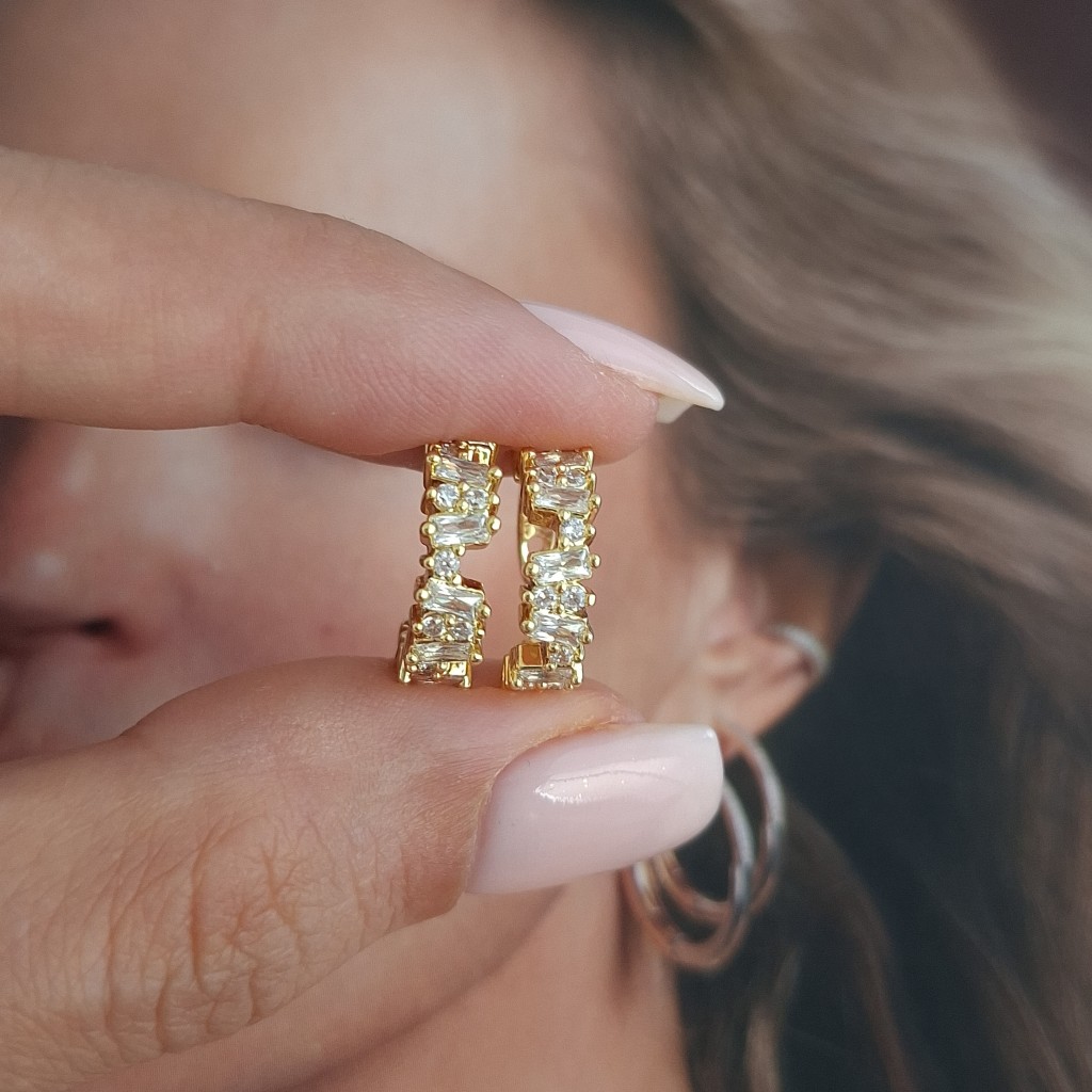 گوشواره ایرکاف طلایی باگت و نگین