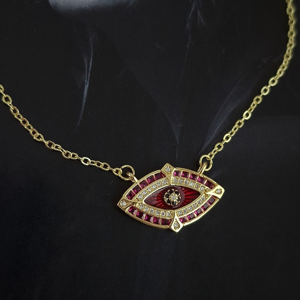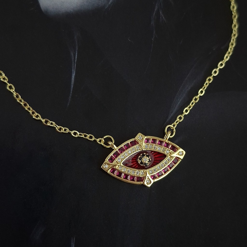 گردنبند چشم نگین و میناکاری قرمز: نماد عشق، قدرت و محافظت درخشان