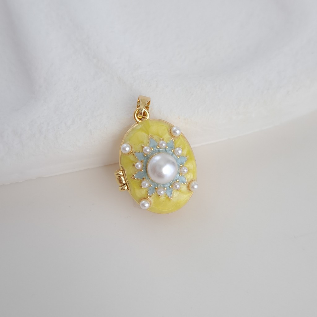 گردنبند لاکت بیضی مروارید میناکاری زرد و آبی