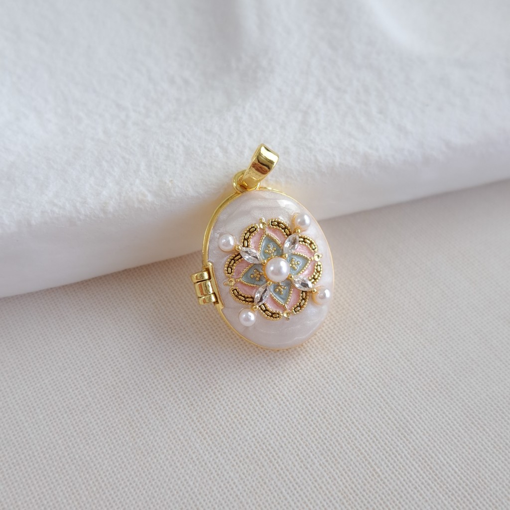 گردنبند لاکت بیضی سفید مرواریدی*