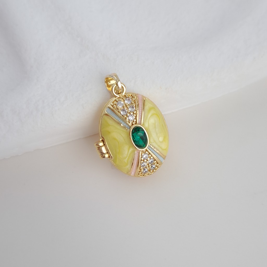 گردنبند لاکت بیضی نگیندار میناکاری زرد