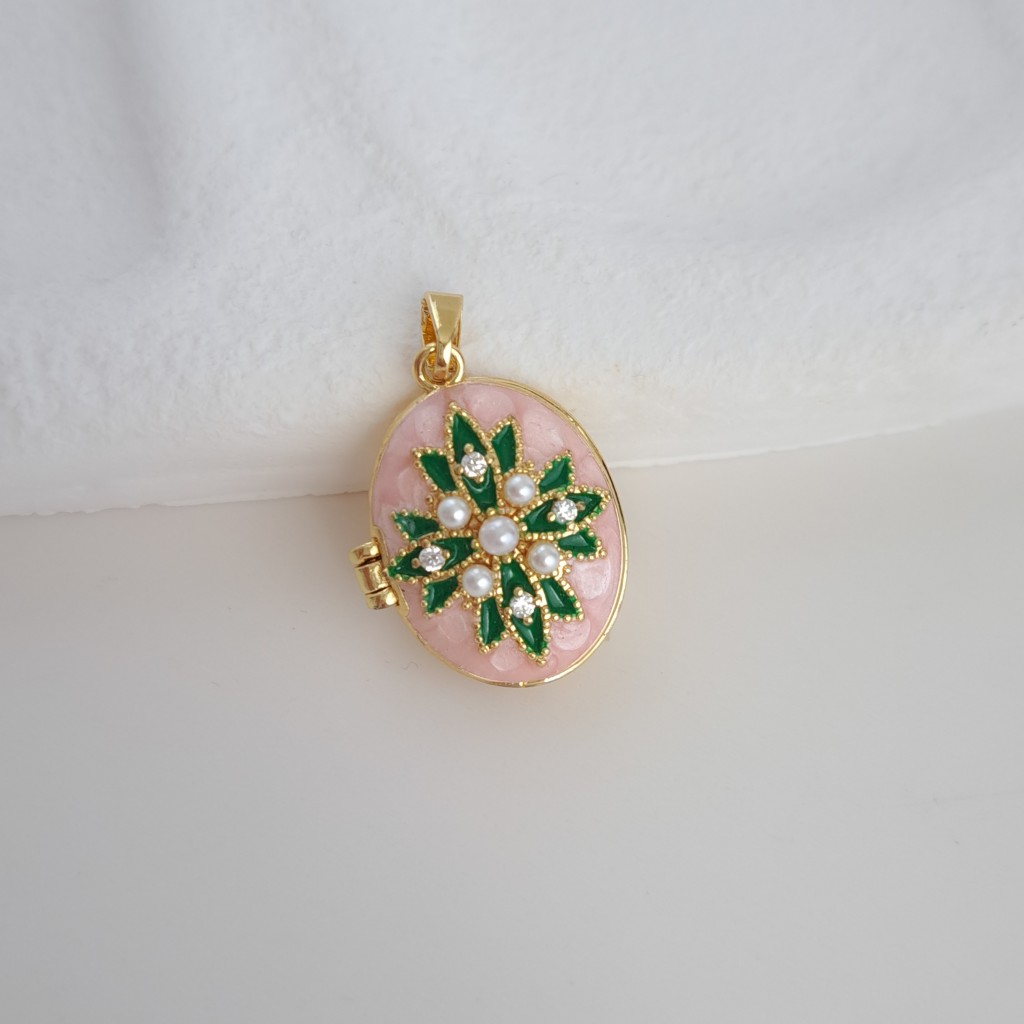 گردنبند لاکت بیضی مروارید سبز و صورتی