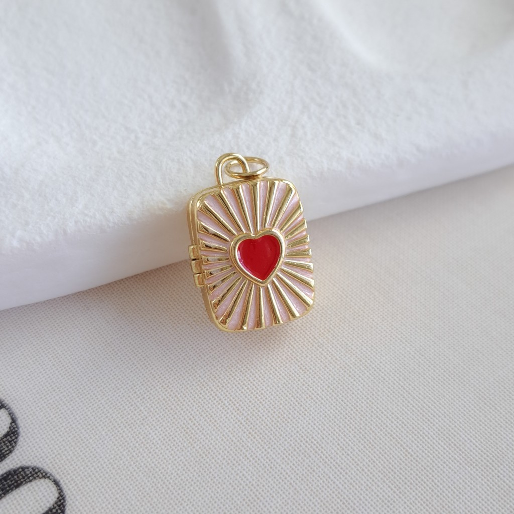 گردنبند لاکت مستطیلی صورتی قلب قرمز**