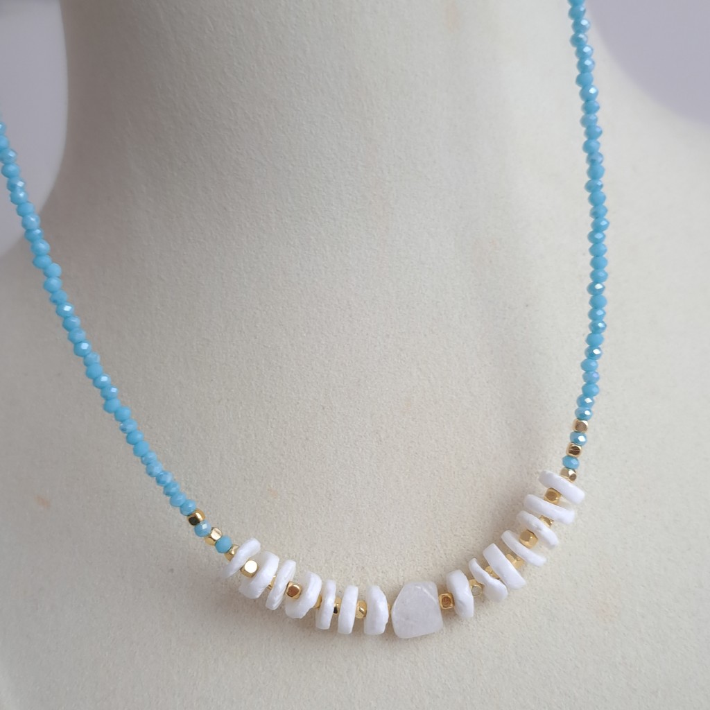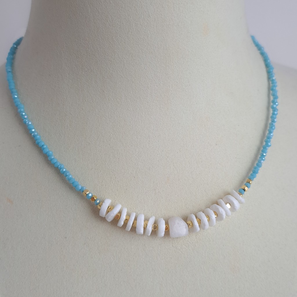 گردنبند مهره آبی و صدف طبیعی همچنین هدیهای ارزشمند و متفاوت برای دوستان یا عزیزان شماست، مخصوصاً کسانی که به دنبال اکسسوریهای الهامگرفته از طبیعت و دریا هستند.