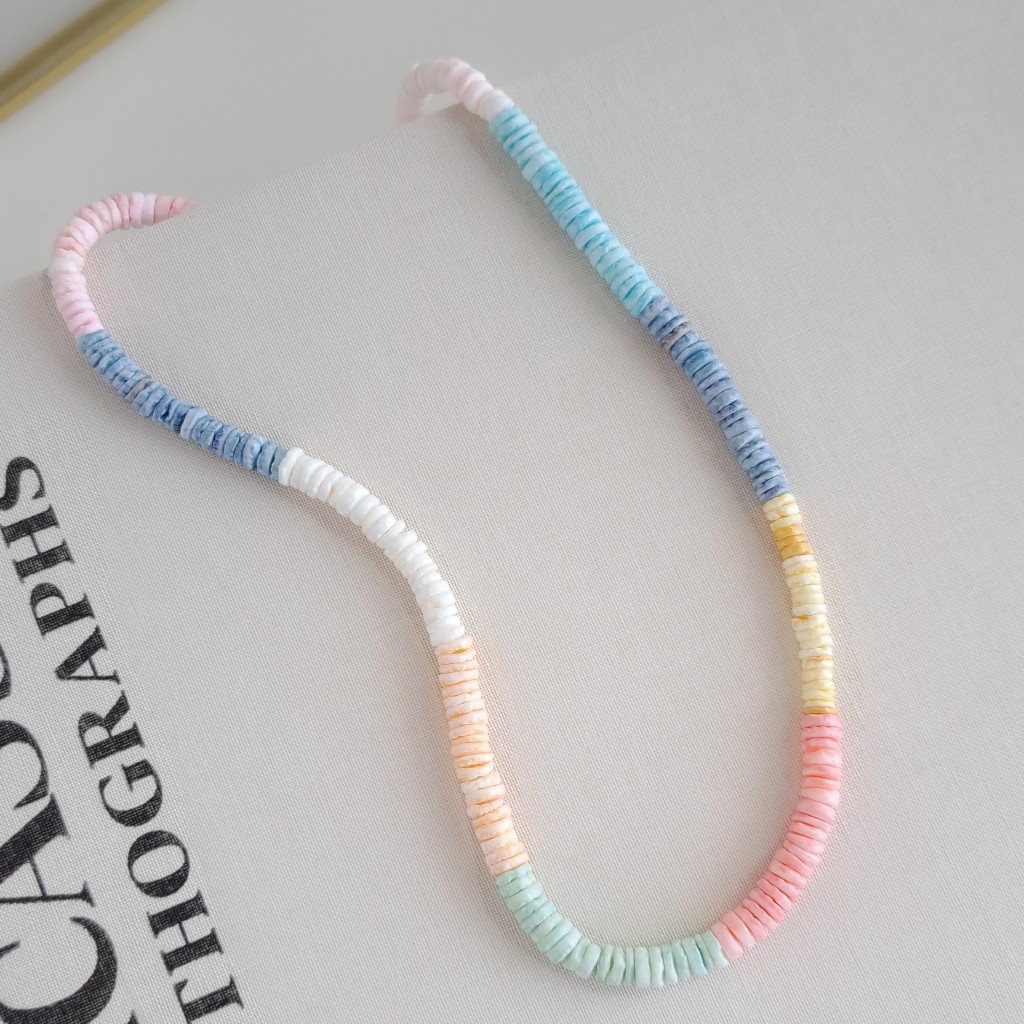 رنگهای متنوع صدفها جلوهای شاداب و زنده به گردنبند بخشیده و باعث میشود با انواع لباسها و استایلهای روزمره یا تابستانی هماهنگی داشته باشد. این گردنبند علاوه بر ظاهر جذاب، سبک و راحت است و طول ۴۰ سانت به همراه ۴ سانت زنجیر اضافه، امکان تنظیم سایز و استفاده راحت روی انواع گردن را فراهم میکند.