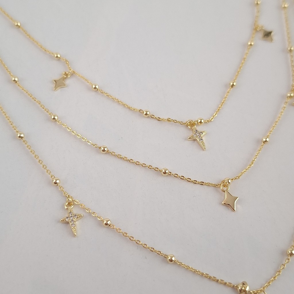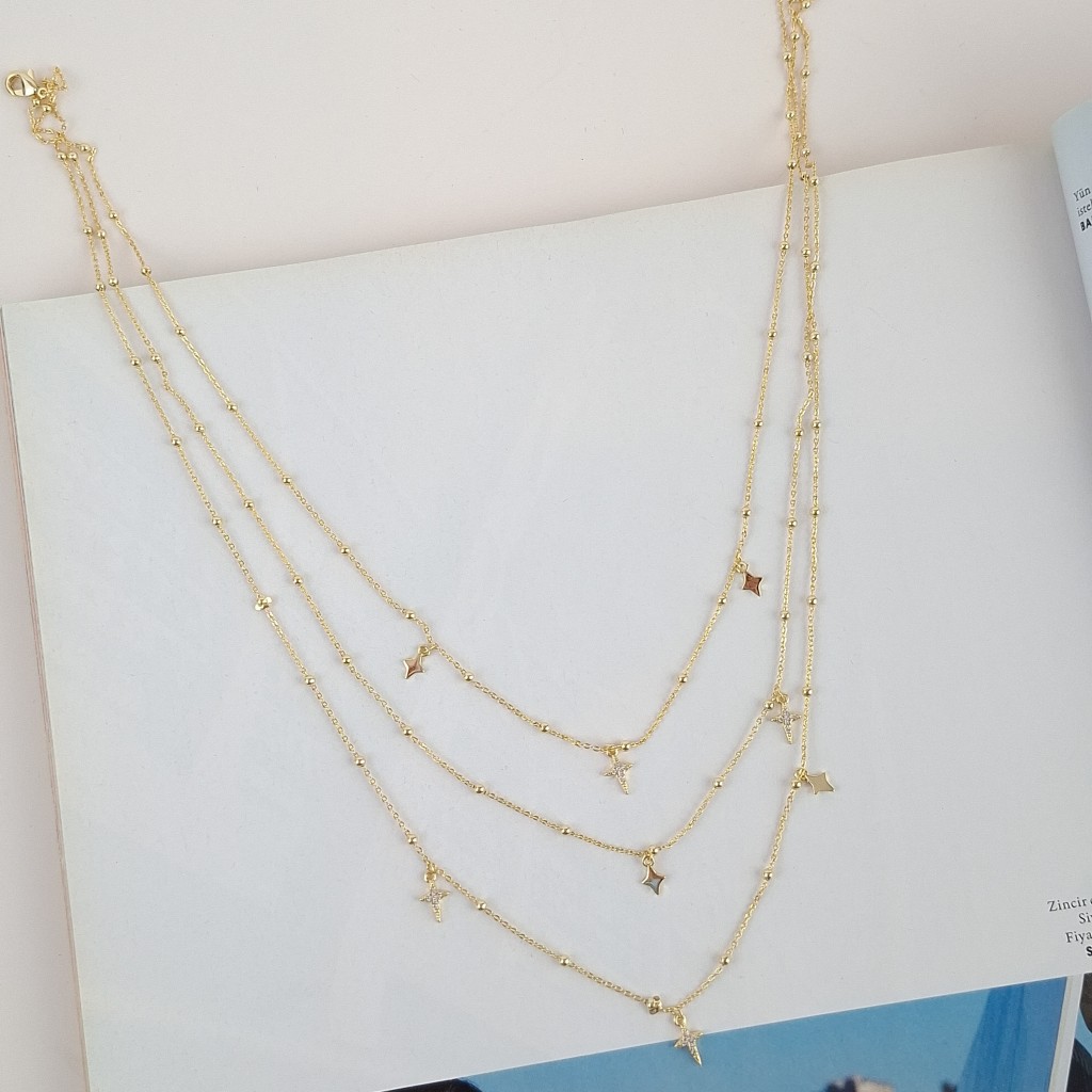 گردنبند سه ردیفه آویز ستاره نامنظم | مدل لایهای فانتزی و درخشان