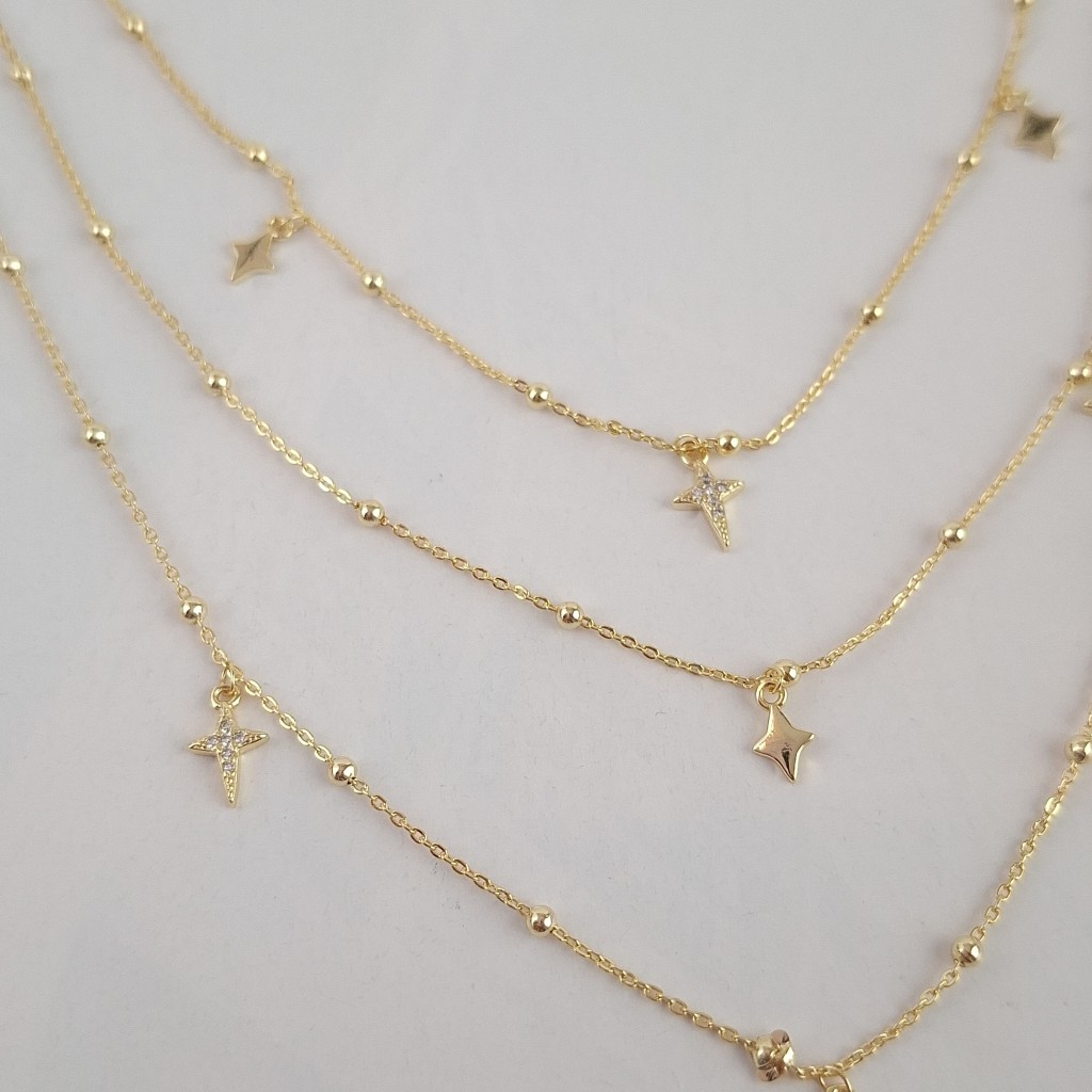 گردنبند سه ردیفه آویز ستاره نامنظم*