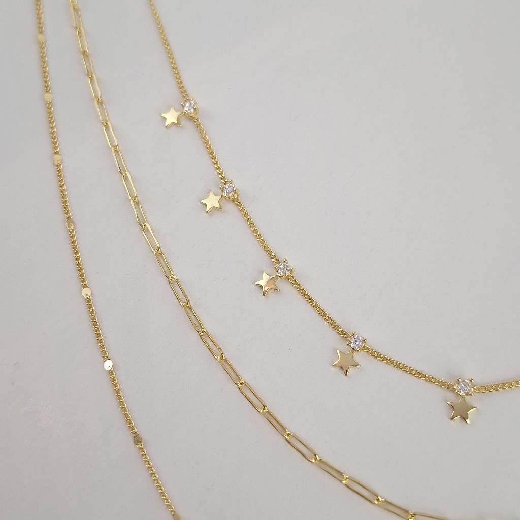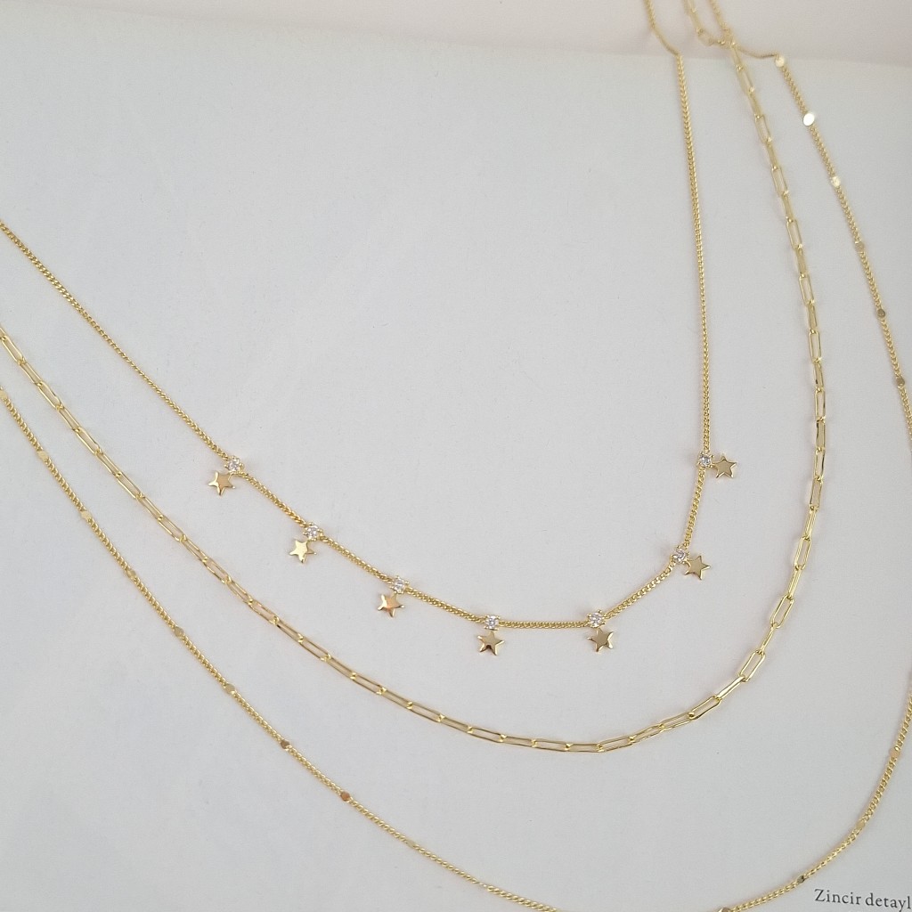 گردنبند سه ردیفه آویز ستاره و نگین*